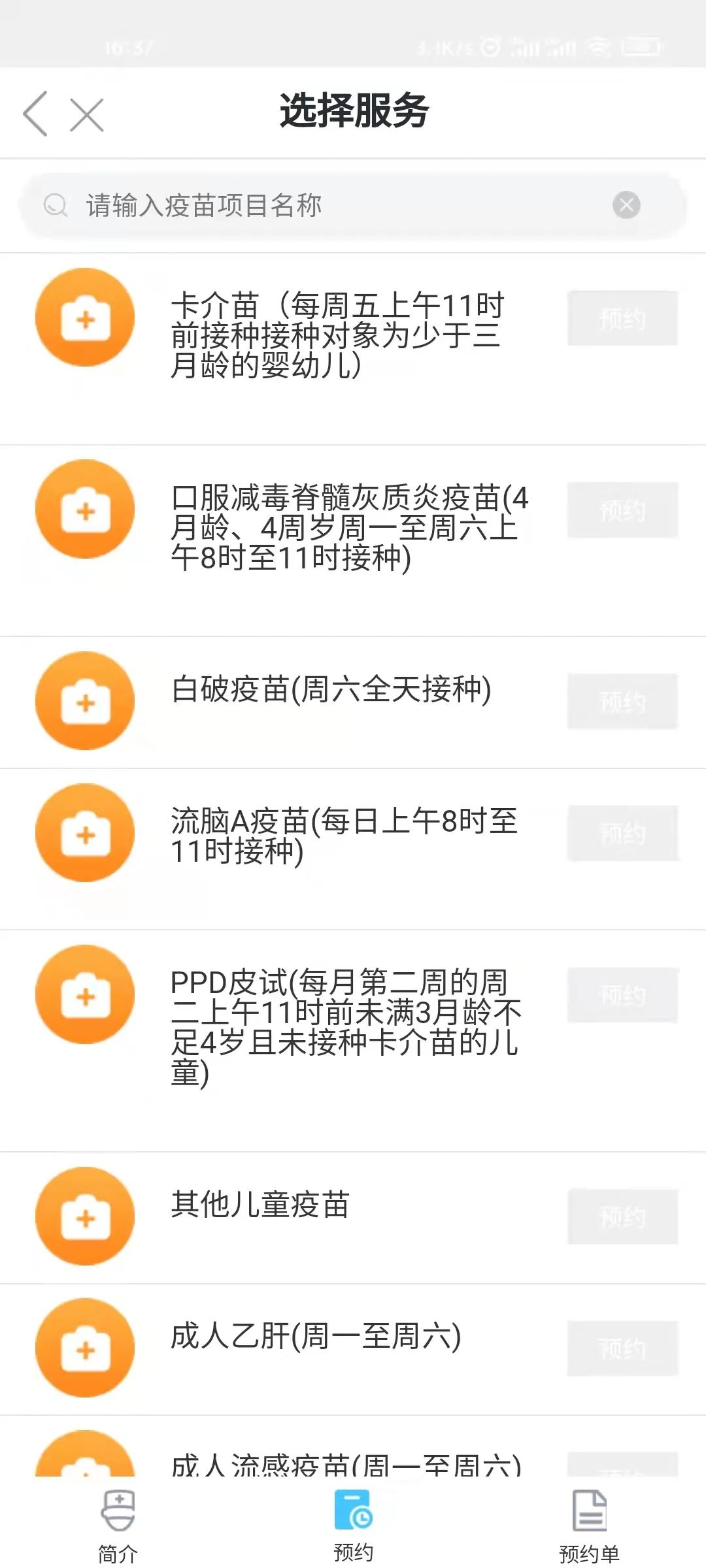 5.点击需要的预约疫苗(蓝底为可预约的)
