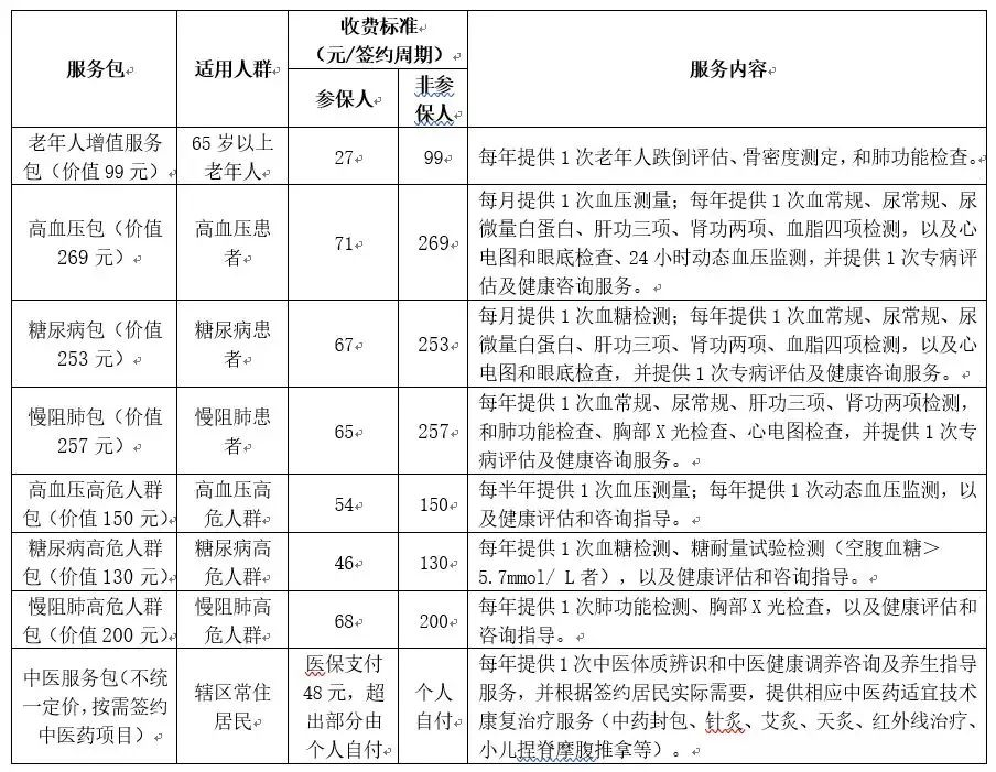 说明:个性化服务包不能单独签约,需先签约普惠包或居民健康管理包其中一种后,方可签约个性化服务包,居民可根据自身健康需求签约多种个性化服务包,签约服务费按所签约的各类服务包费用合并计算。