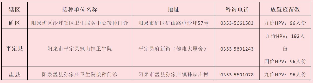 阳泉市人乳头瘤病毒(HPV)疫苗网上预约公告(二)