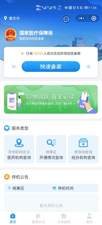 “国家异地就医备案小程序”,首页出现“快速备案”选项,点击后就可以开始备案了。