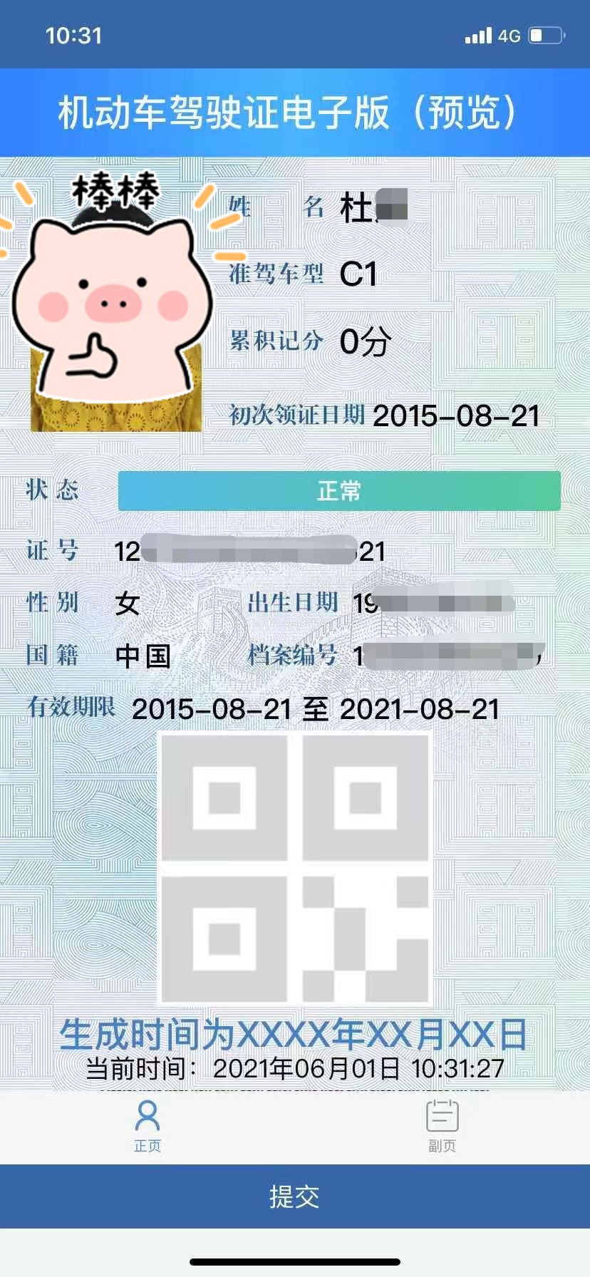 7、提交照片后即可查看机动车驾驶证电子版(预览)