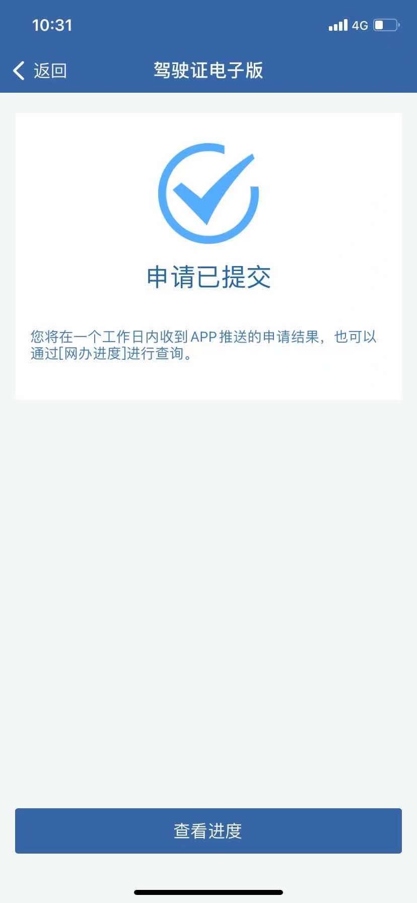 9、申请后的一个工作日内将会收到APP推送的申请结果,也可以通过【网办进度】进行查询。