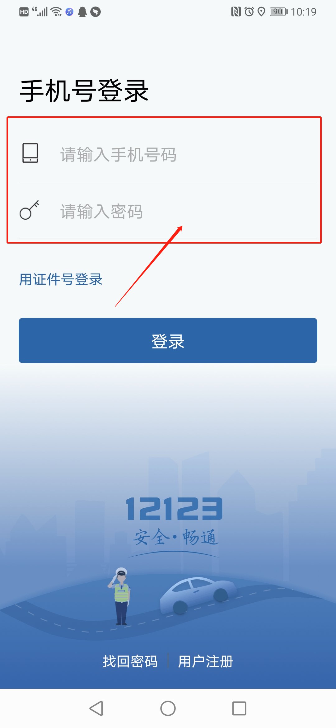 1、下载并打开“交管12123”APP,输入账号、密码,登录APP;