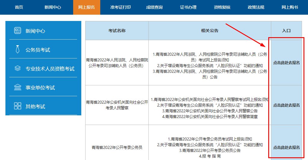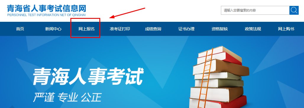 1、登录青海省人事考试信息网,点击“网上报名”按钮;