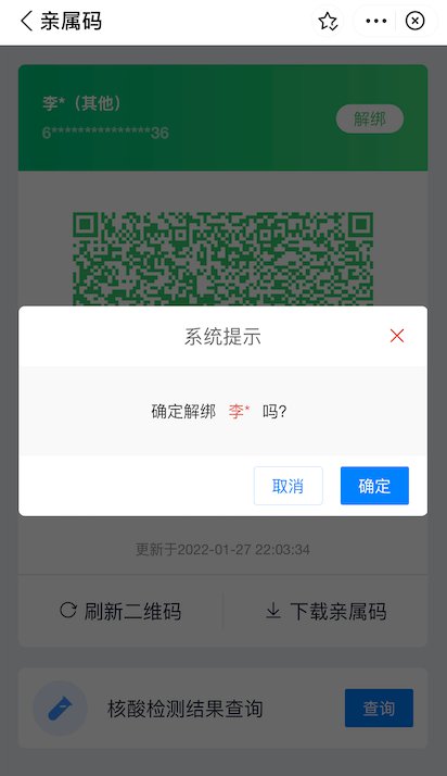 进入西安亲属码列表,可向右滑动解绑,或在亲属码展示界面点击“解绑”即可解除绑定