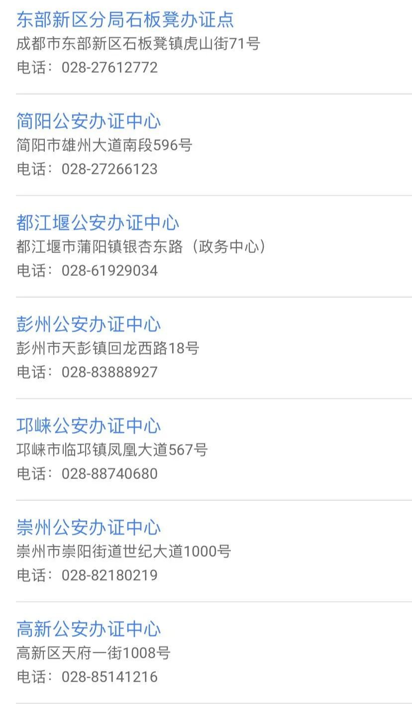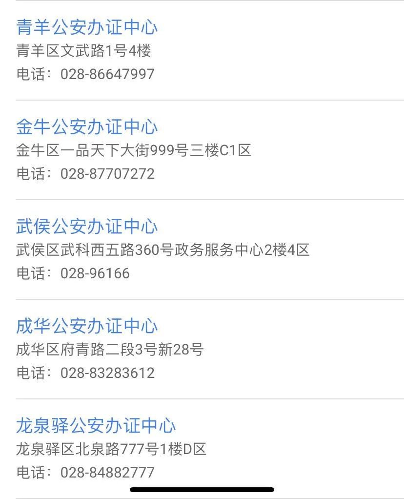 成华公安办证中心: 府青路二段3号新28号 电话028-83283612