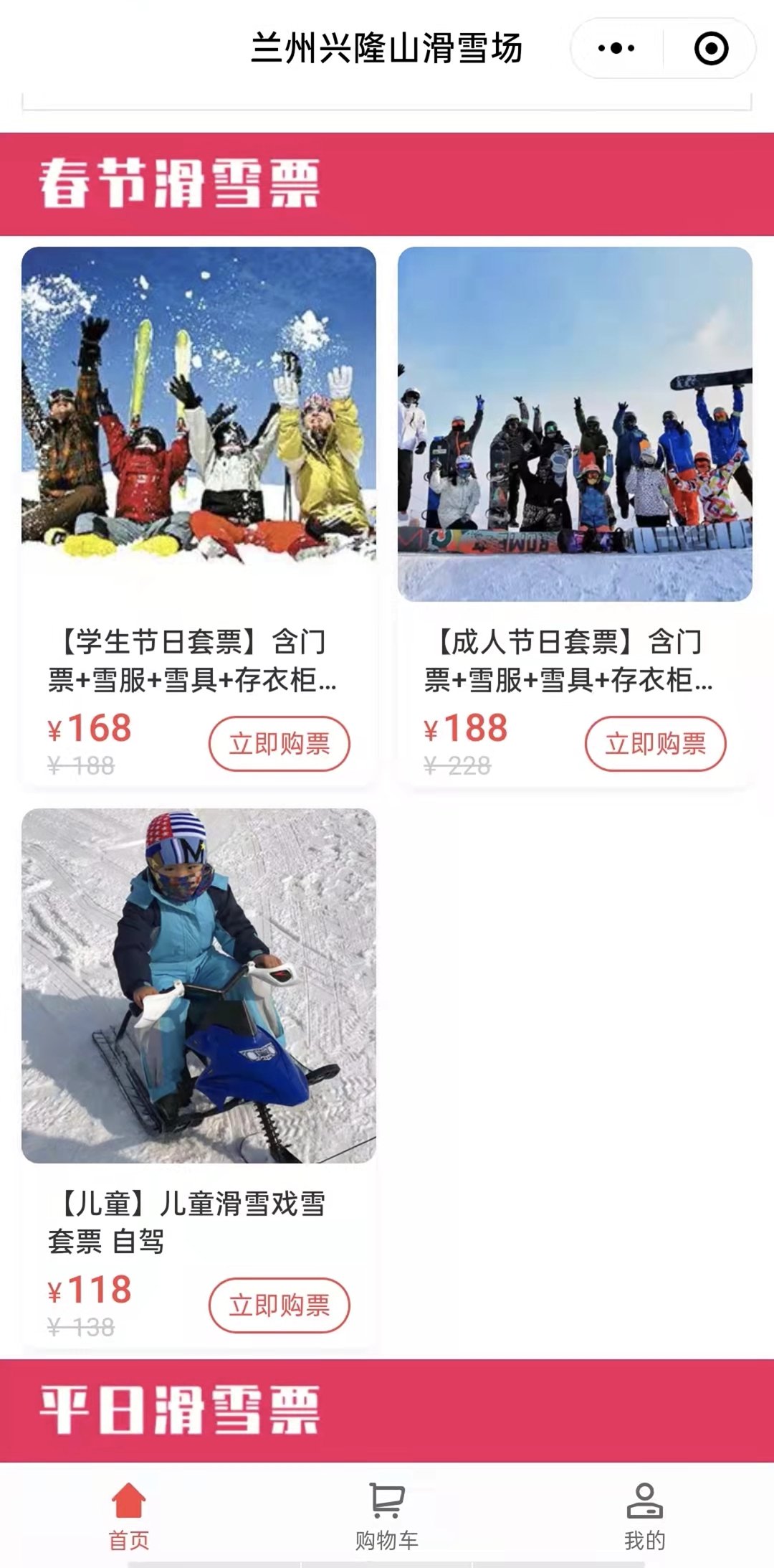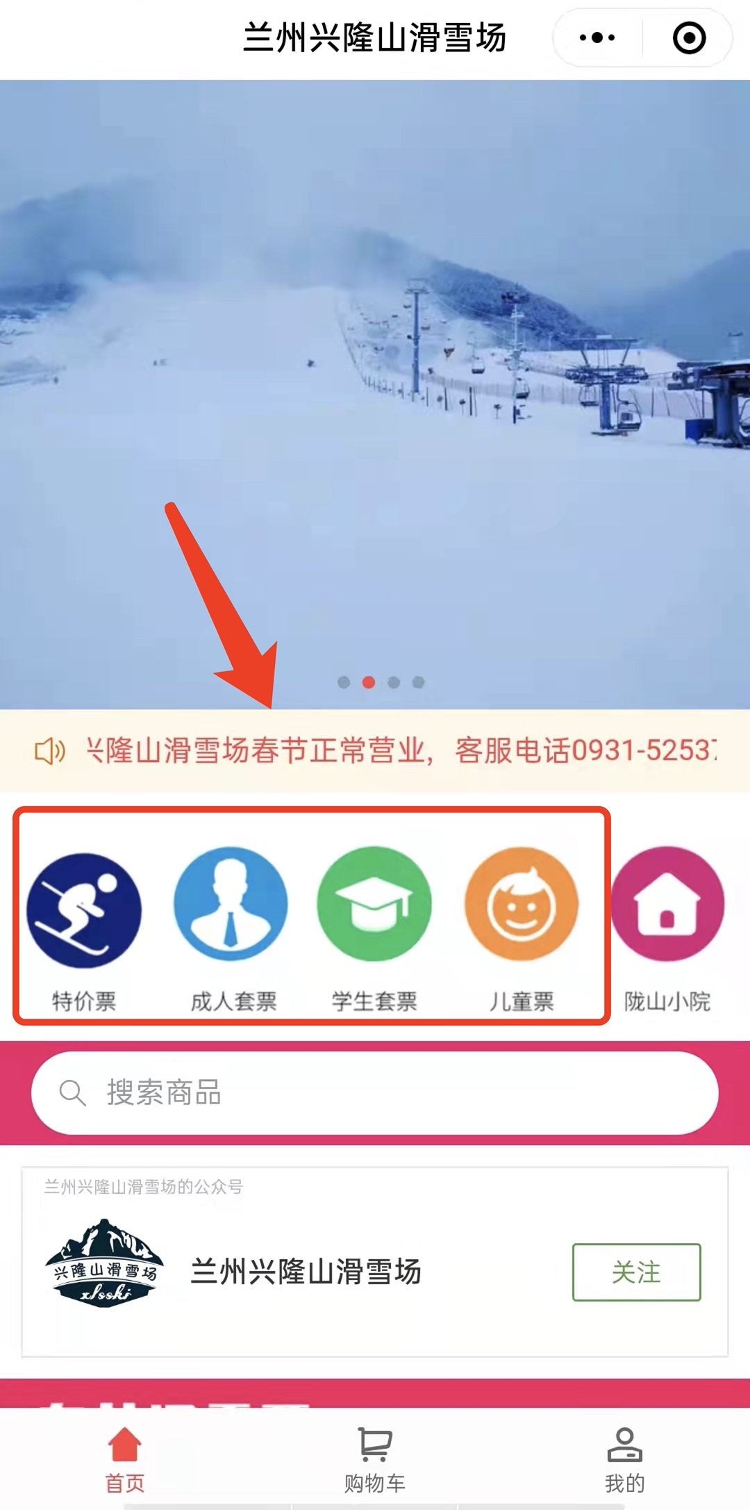 第一步:进入“兴隆山滑雪场购票小程序”;
