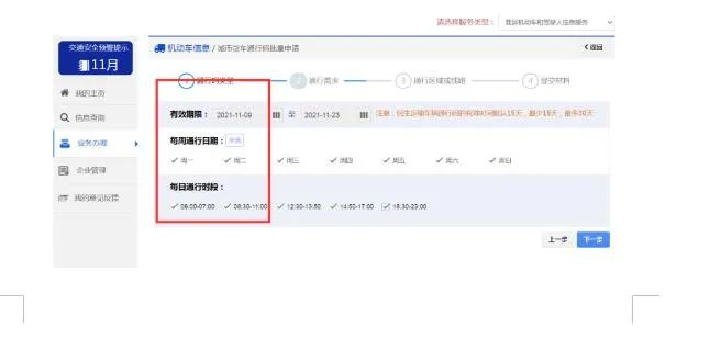 五、选择“通行日期”。