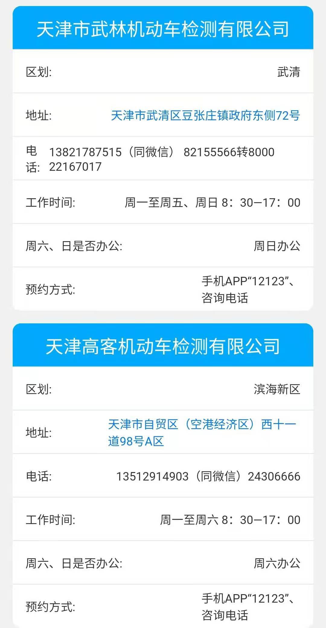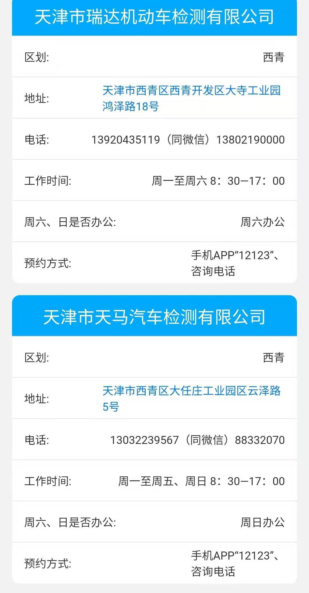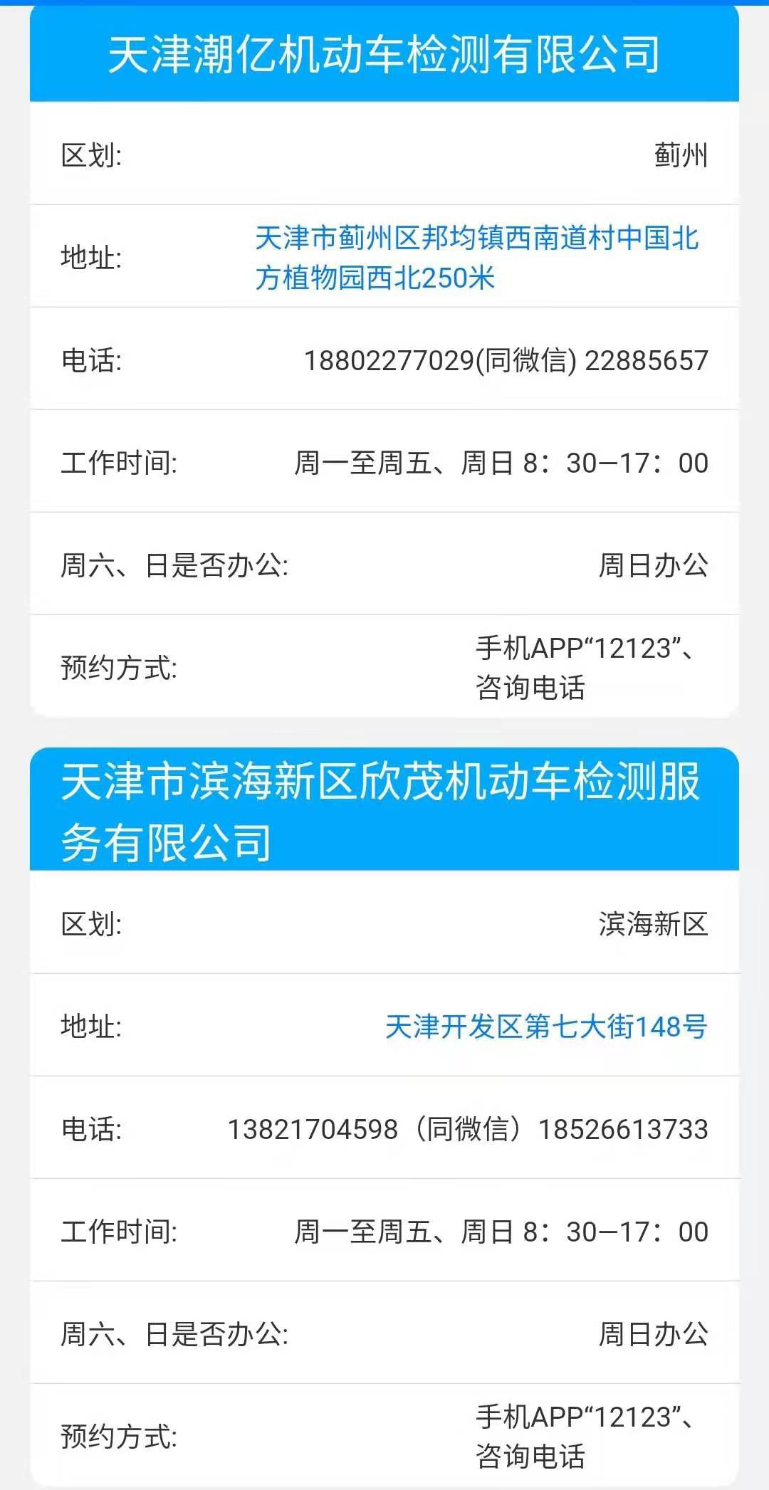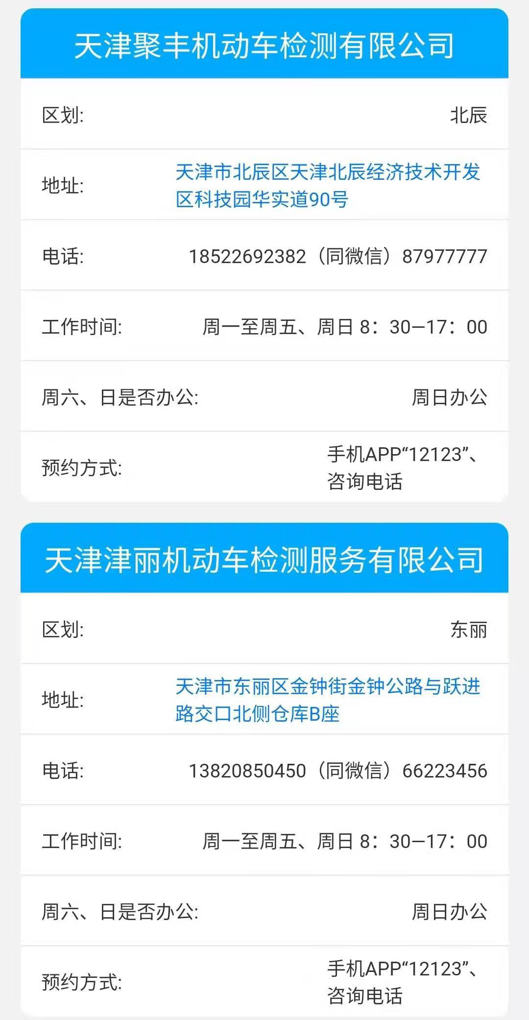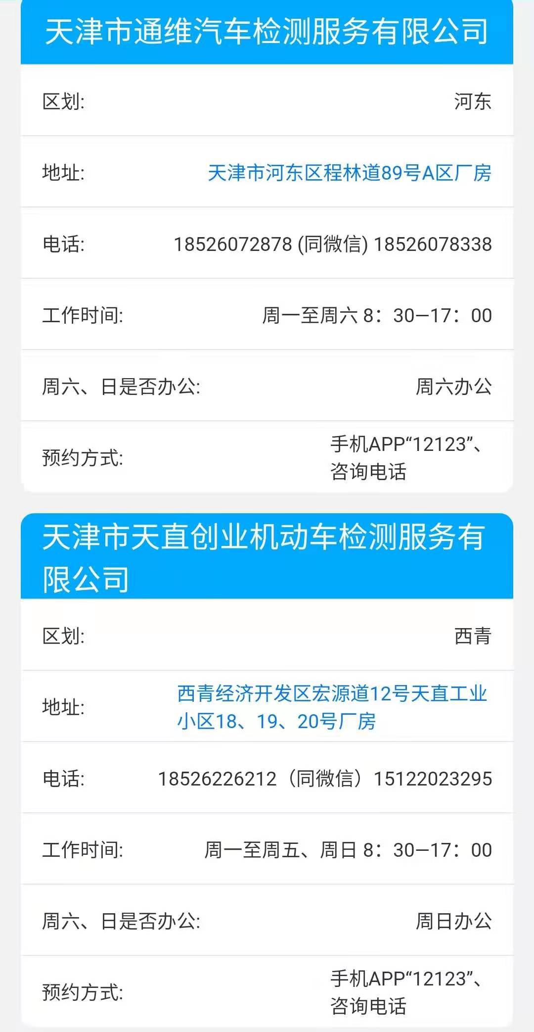 ➤天津各区机动车检测站地址+预约电话+工作时间
