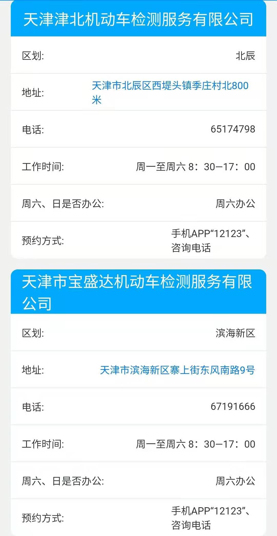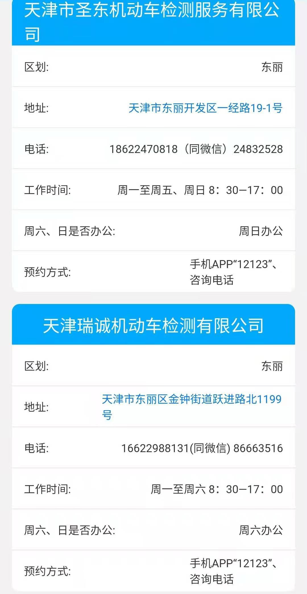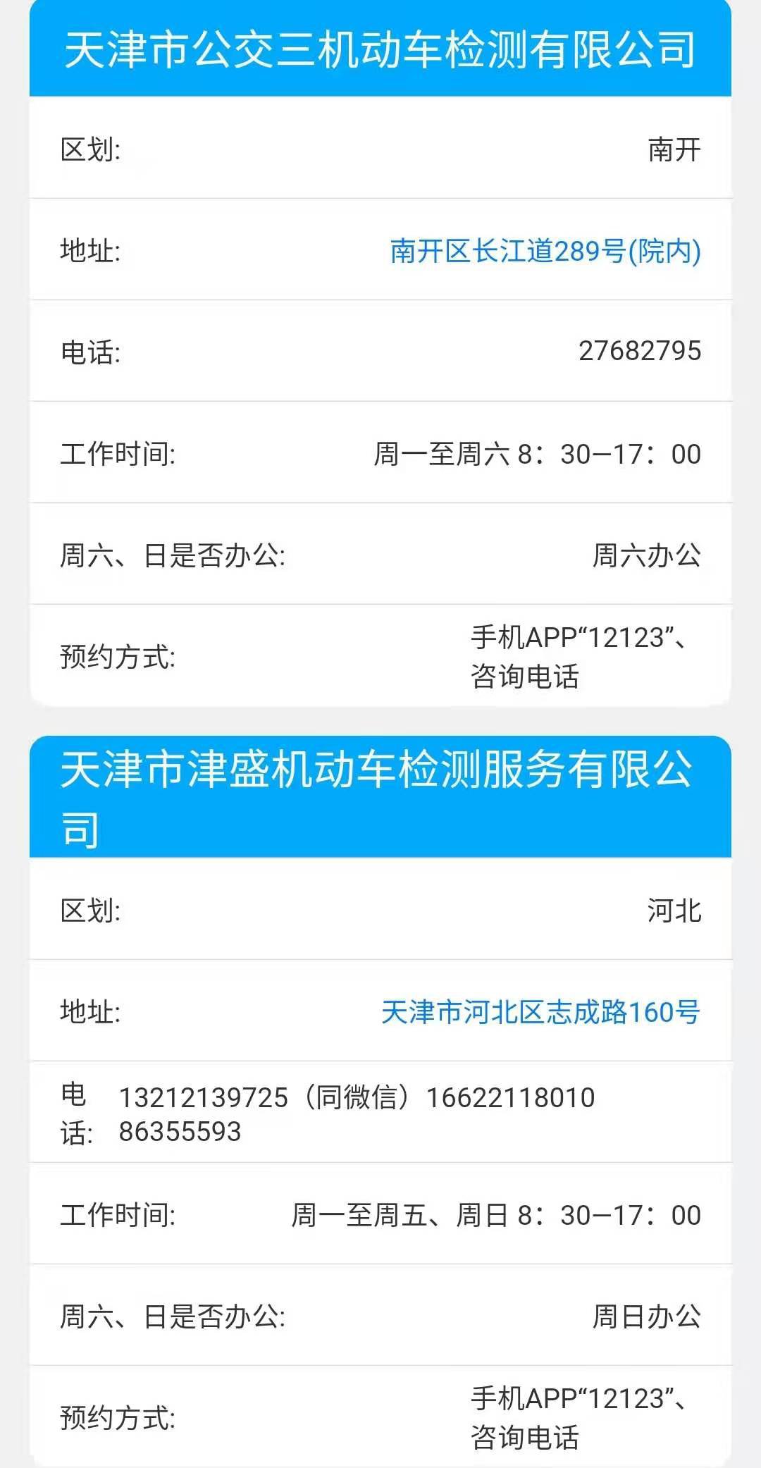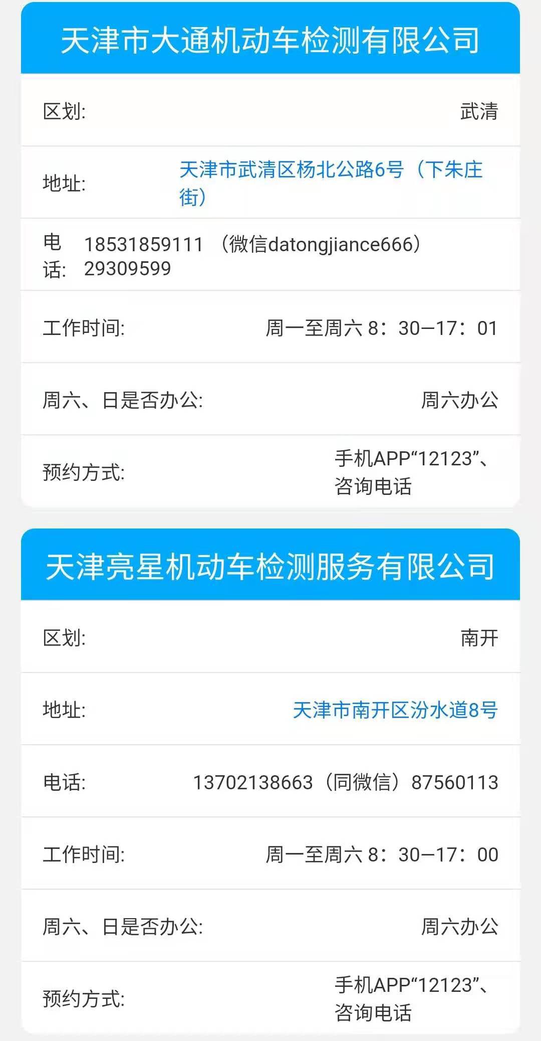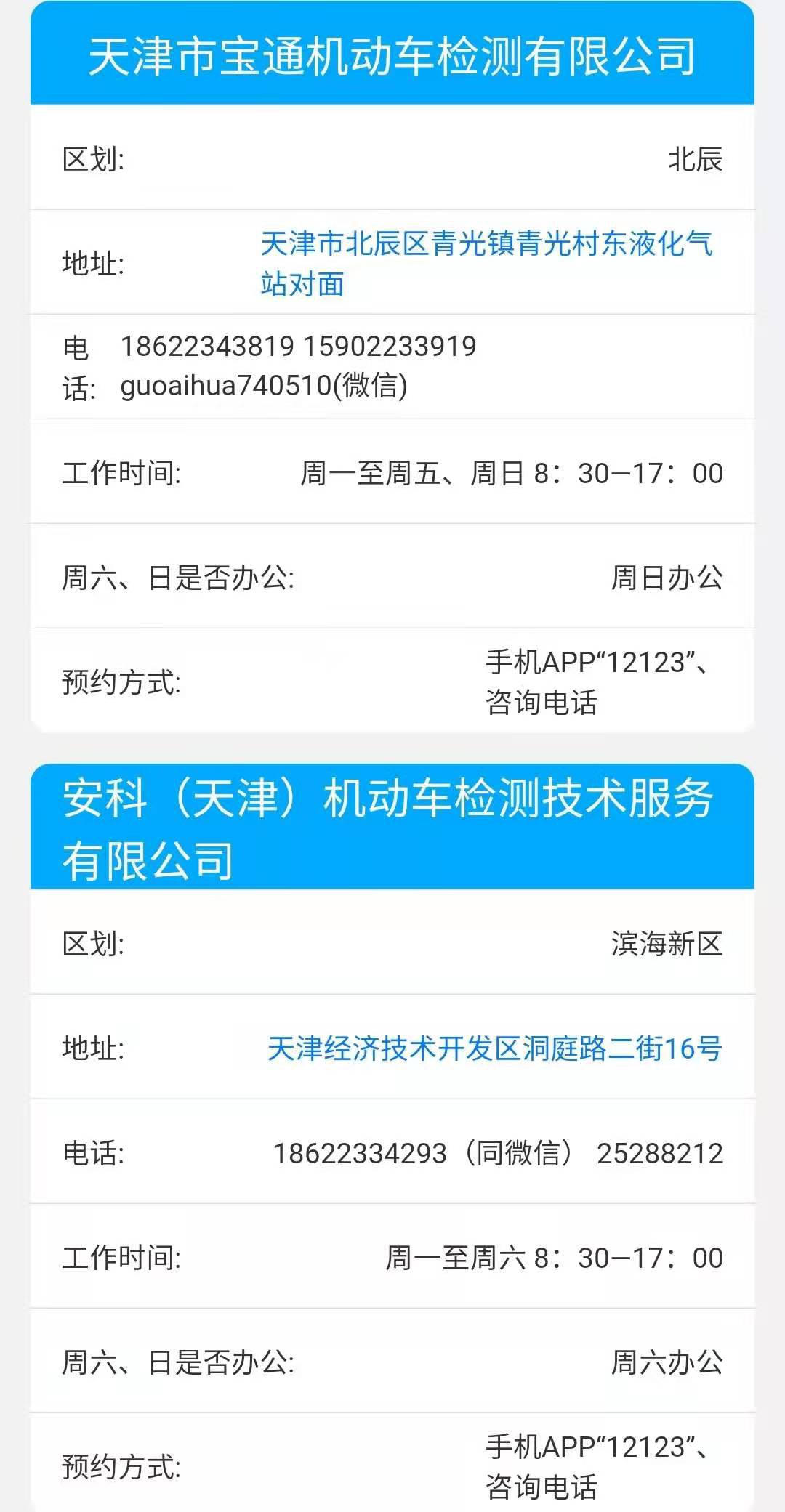 ➤天津各区机动车检测站地址+预约电话+工作时间
