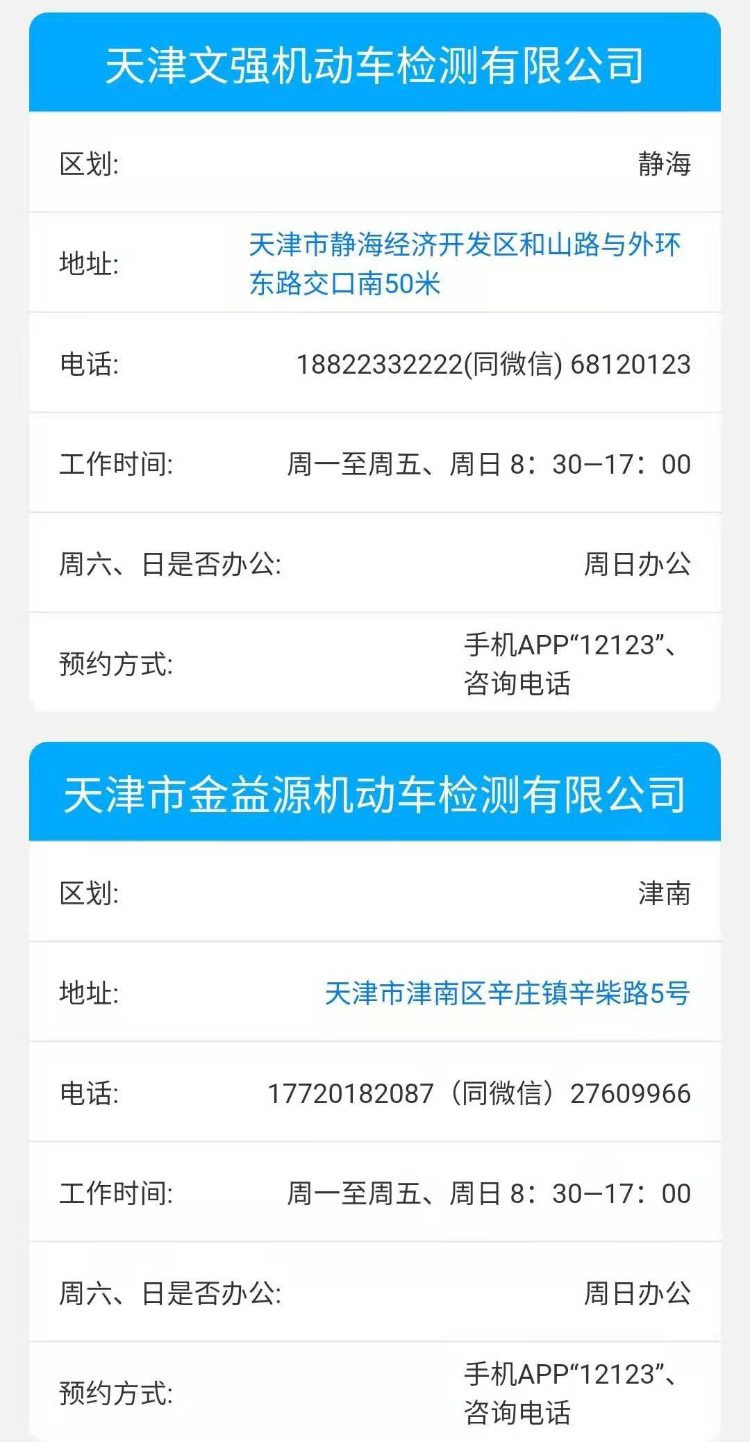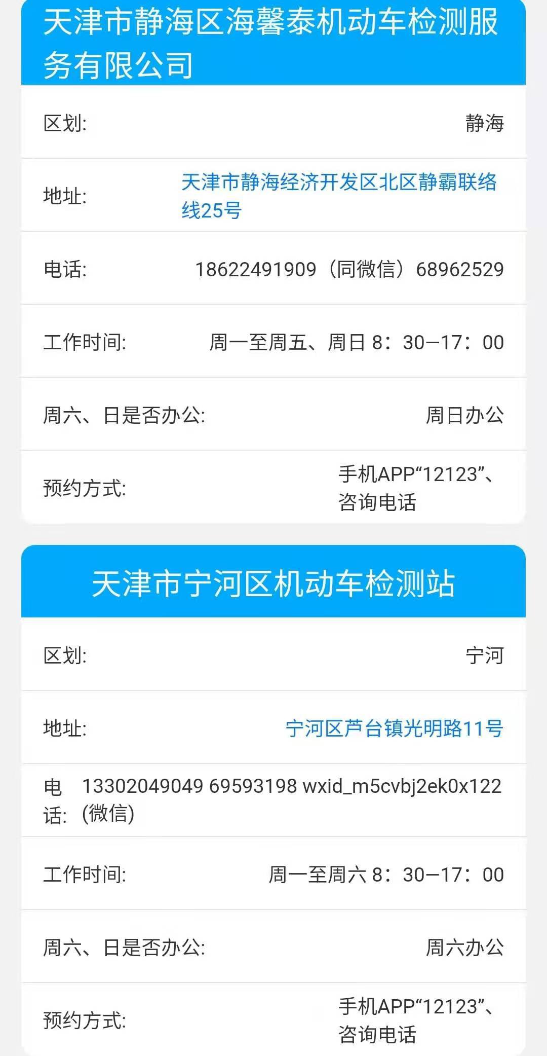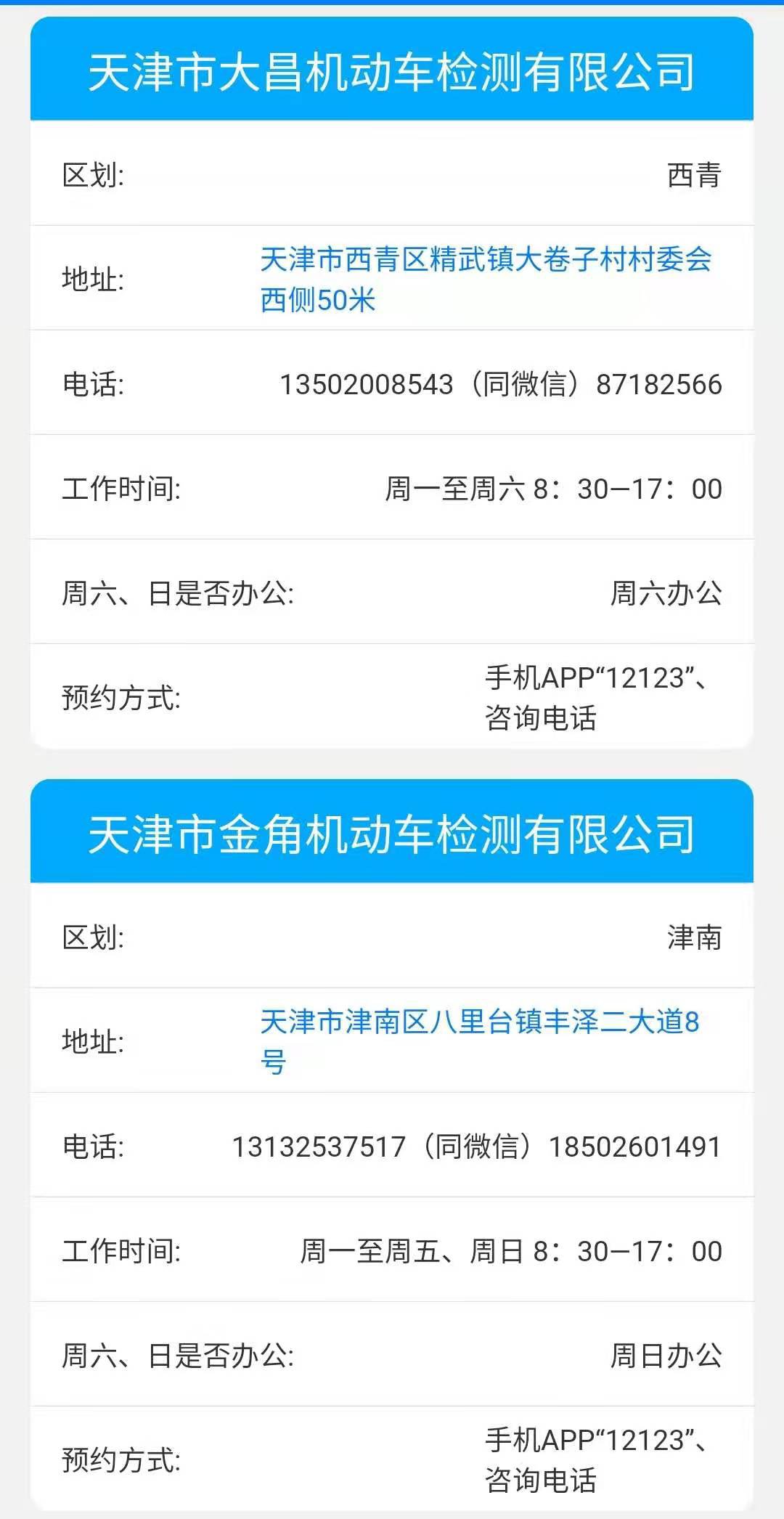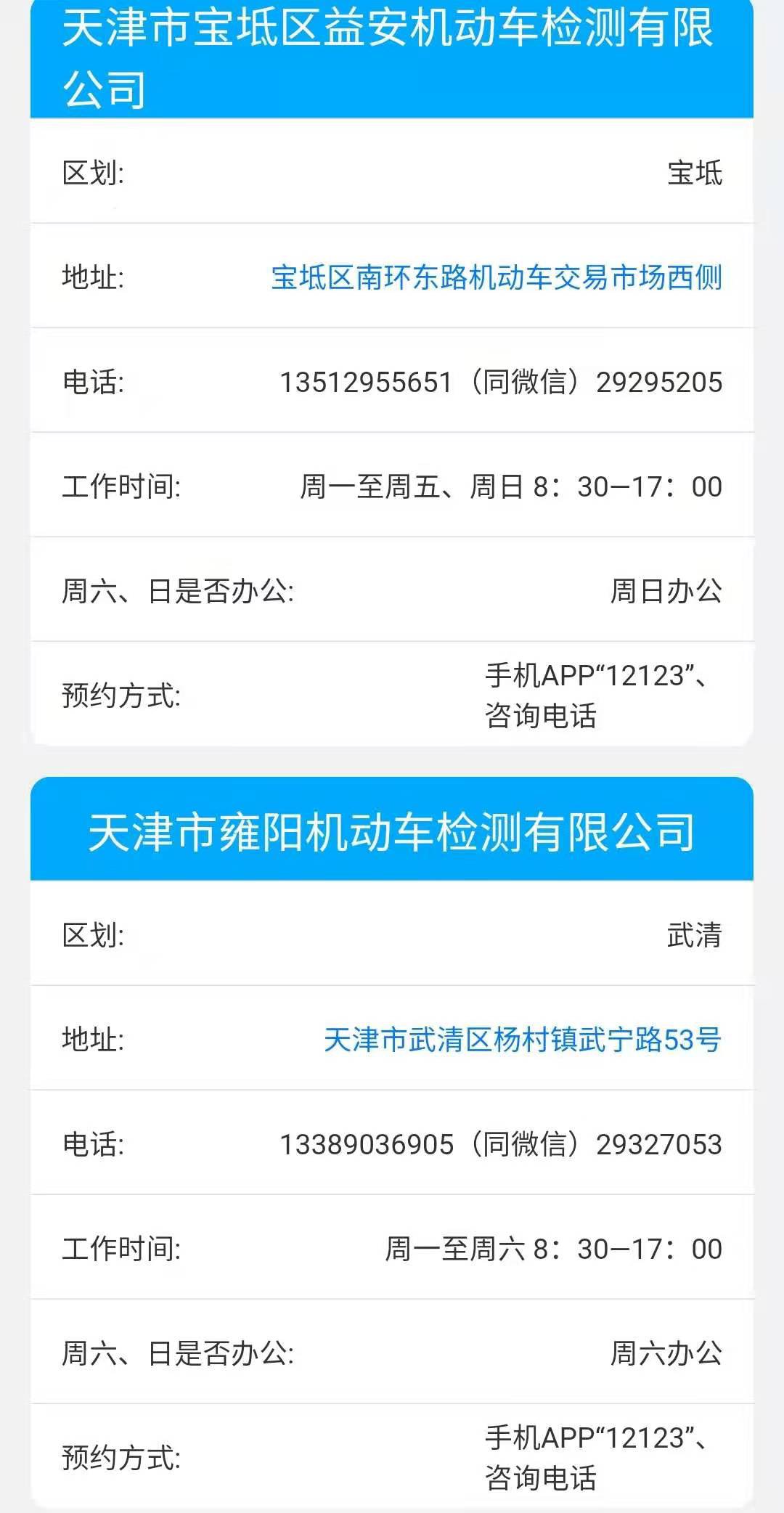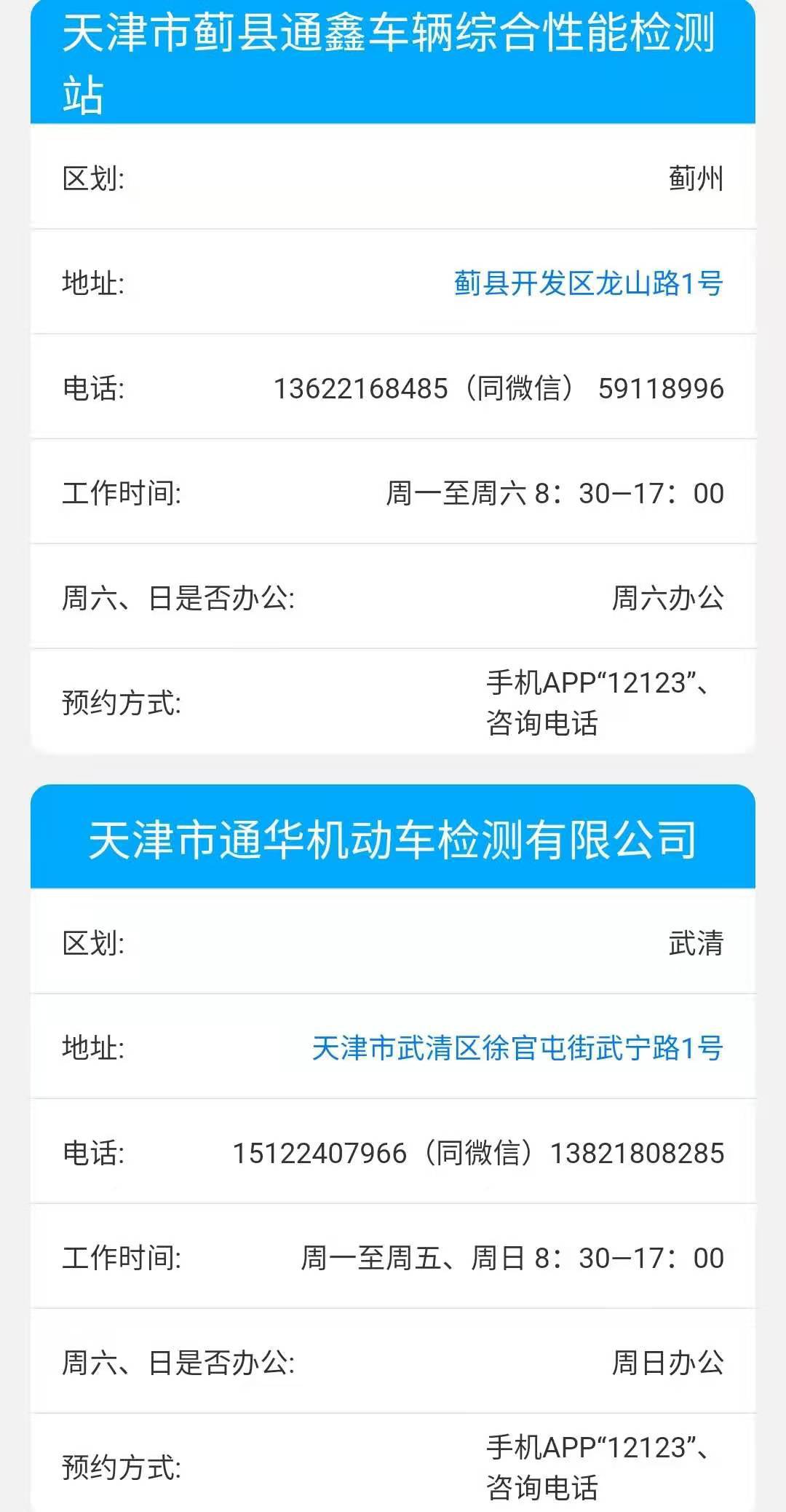 ➤天津各区机动车检测站地址+预约电话+工作时间