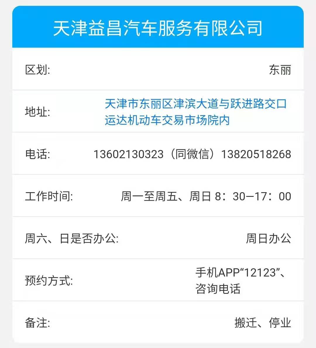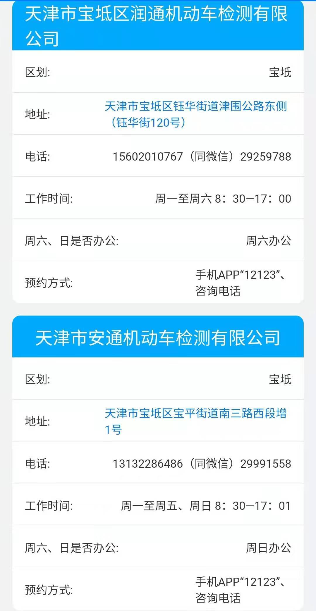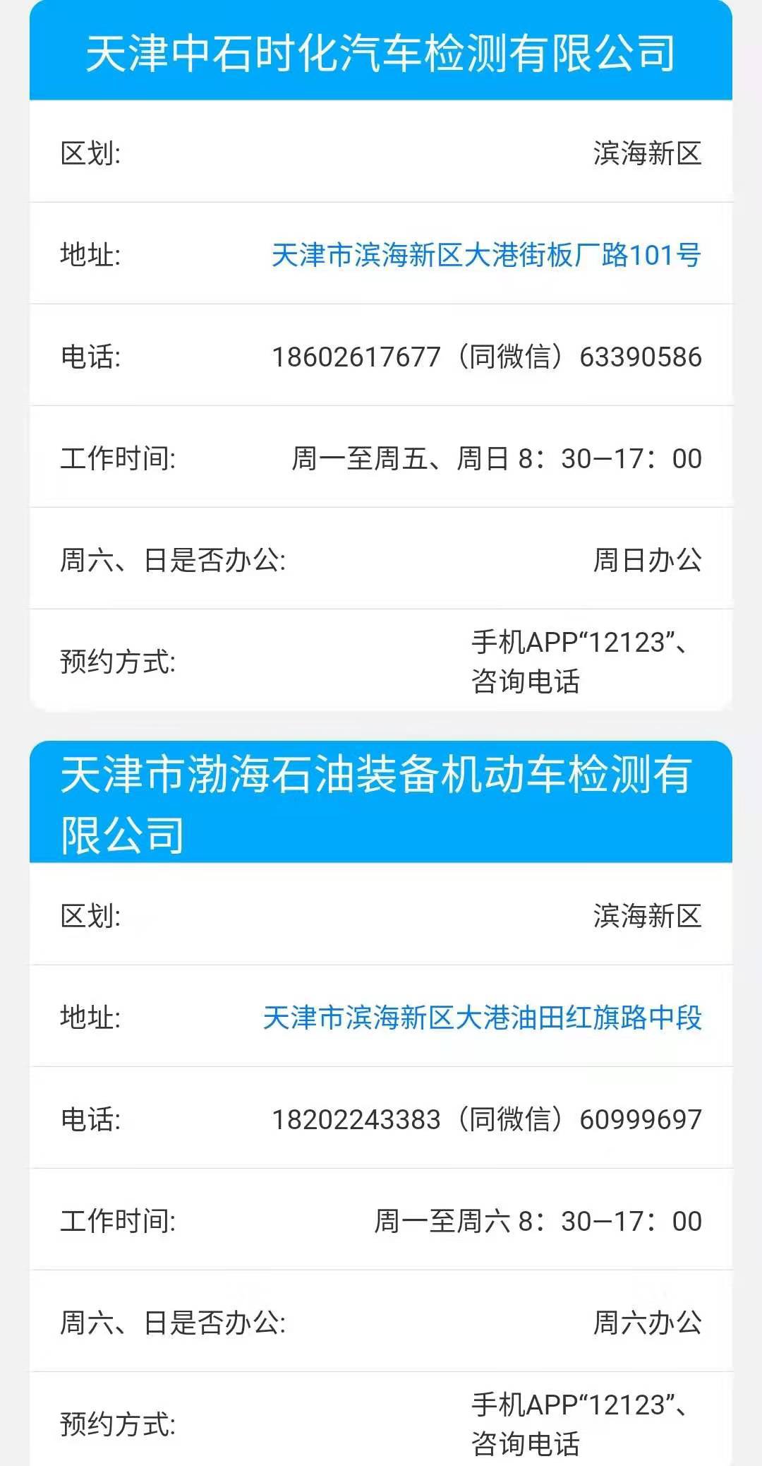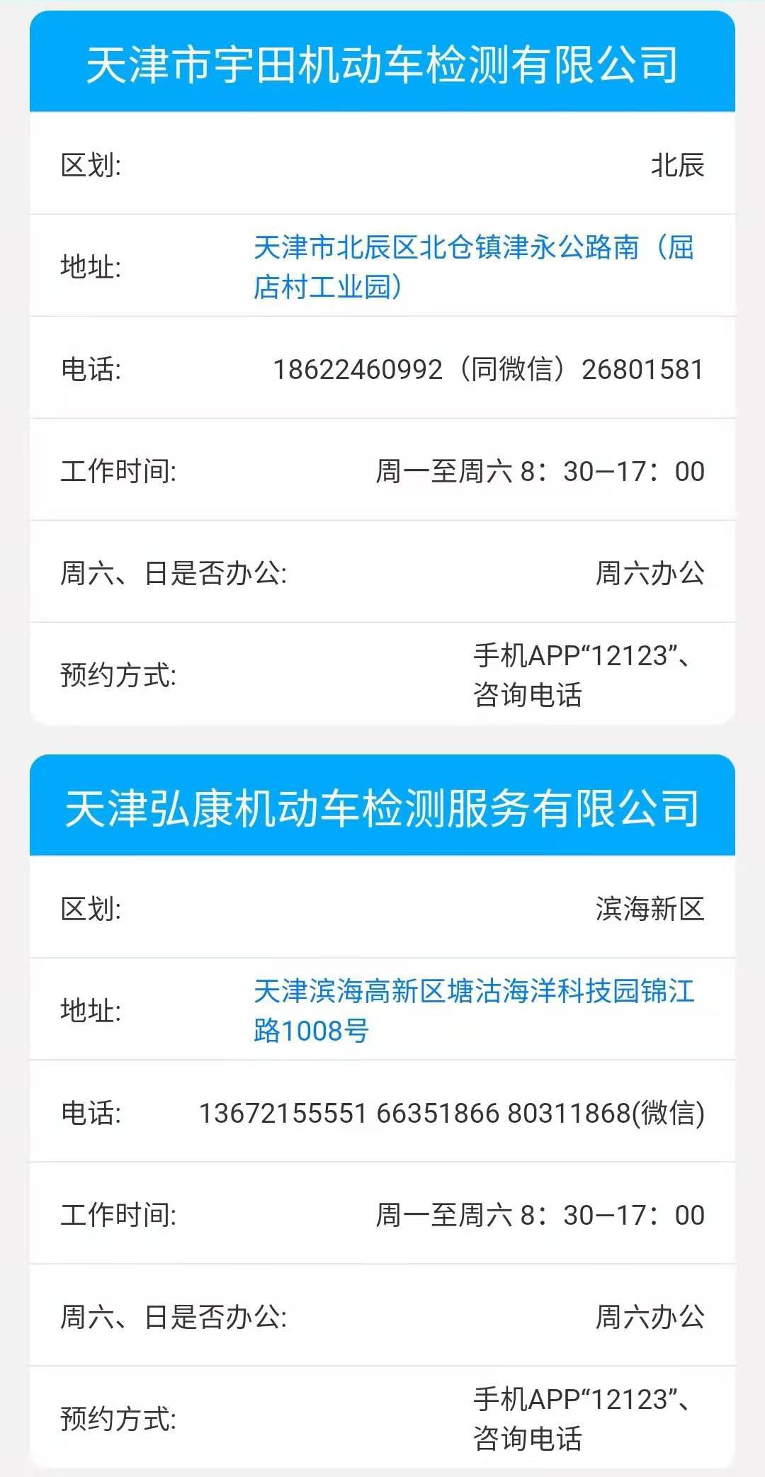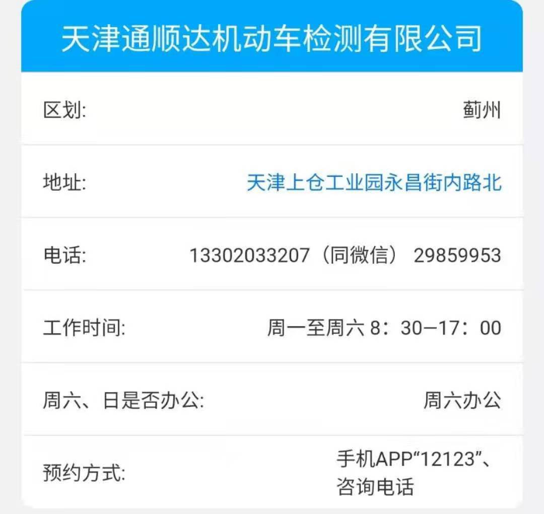 ➤天津各区机动车检测站地址+预约电话+工作时间