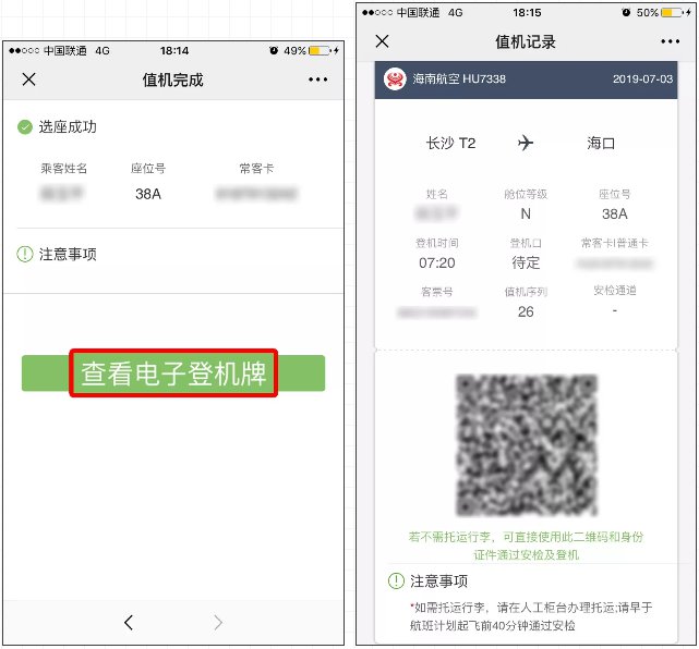 湖南公安服务平台最近开通了“电子登机牌值机选座”功能,旅客可以通过平台完成值机、选座,凭借电子登机牌上的二维码就能轻松完成机场安检和登机口验证,实现一“证”登机。