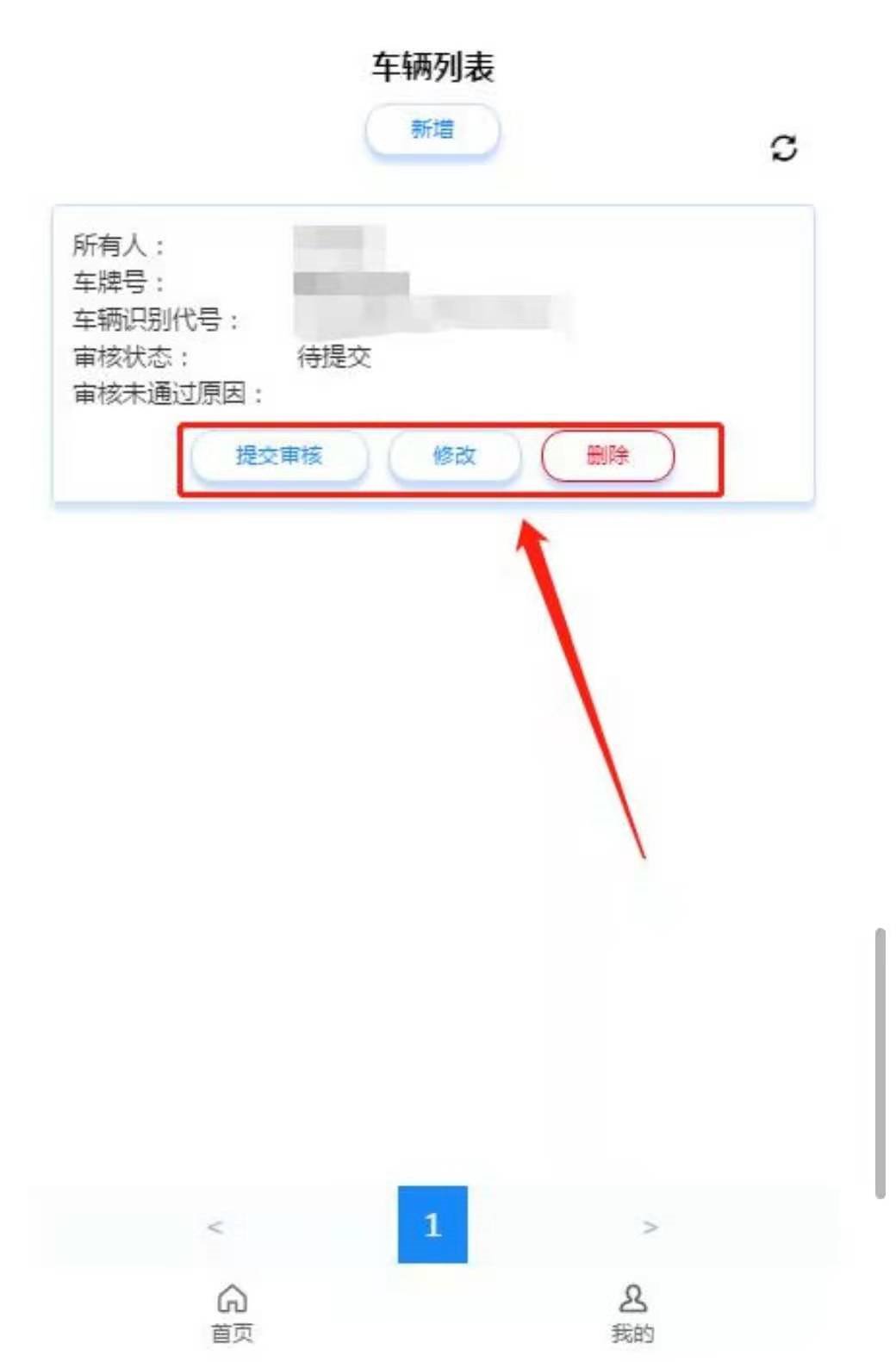 七、添加车辆信息成功在车辆列表页面可看到新添加的车辆信息,同时可对车辆进行如图 12 中所示提交审核、修改、删除。点击如图 12 中“提交审核”按钮提交车辆信息,车辆审核通过后如图 13 所示审核状态为“审核通过”。