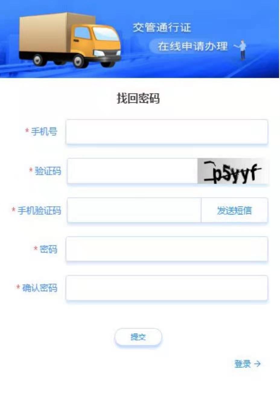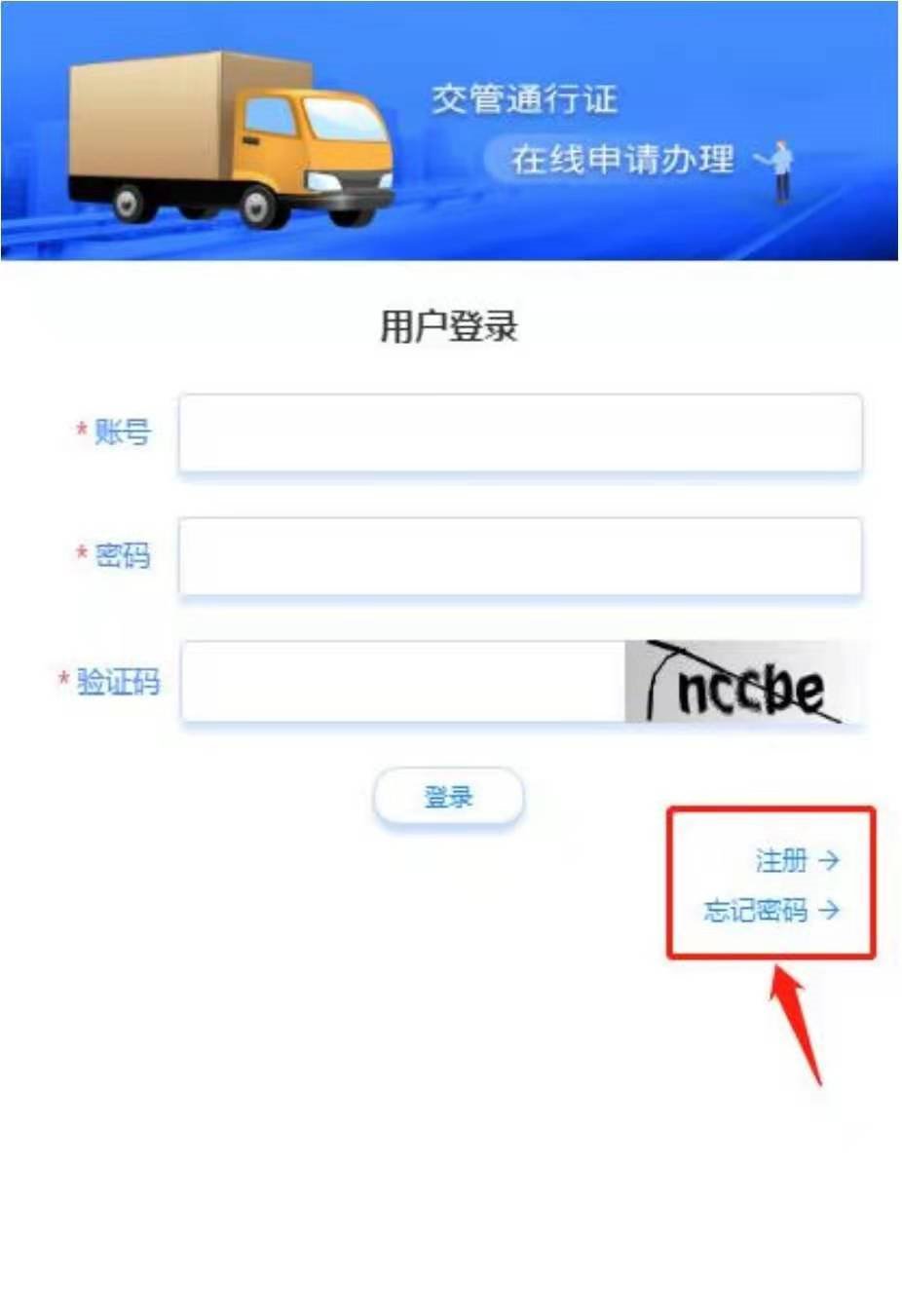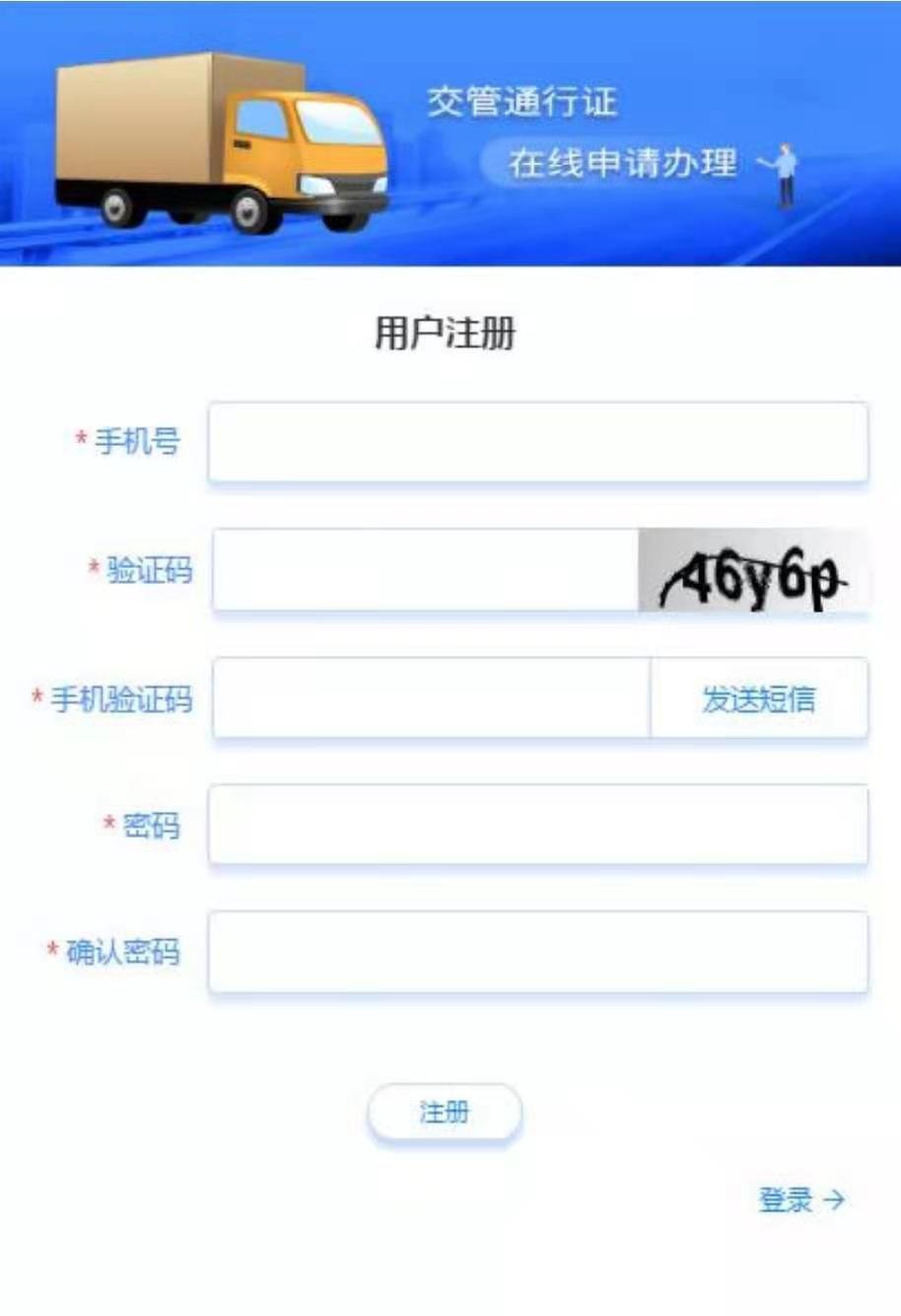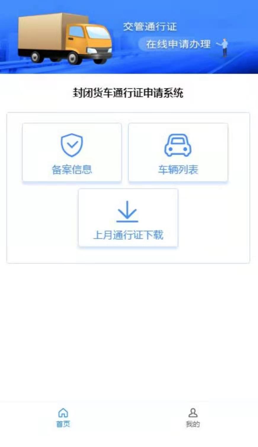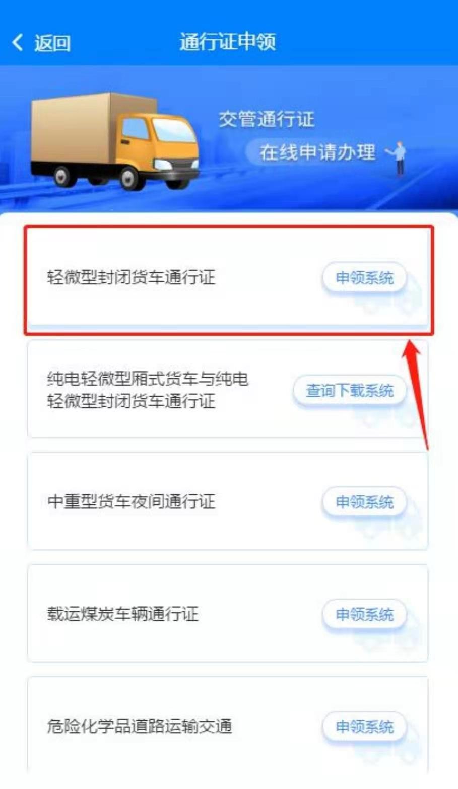 二、在图 2 中点击“轻微型封闭货车通行证”的“申领系统”按钮,点击后进入到如图 3 所示的“轻微型封闭货车通行证申请系统”。