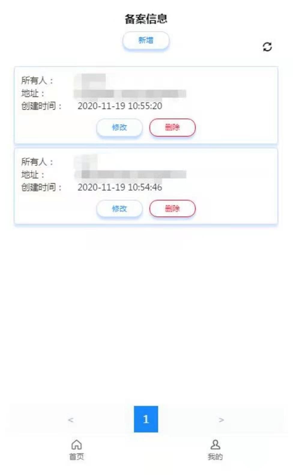 五、点击图 7 中的“新增”按钮进入如图 8 的页面输入备案信息进行添加。点击下方“确定”按钮保存备案信息后在备案信息列表页面可看到新添加的备案信息,同时可对备案信息进行如图 7 中所示修改、删除操作。