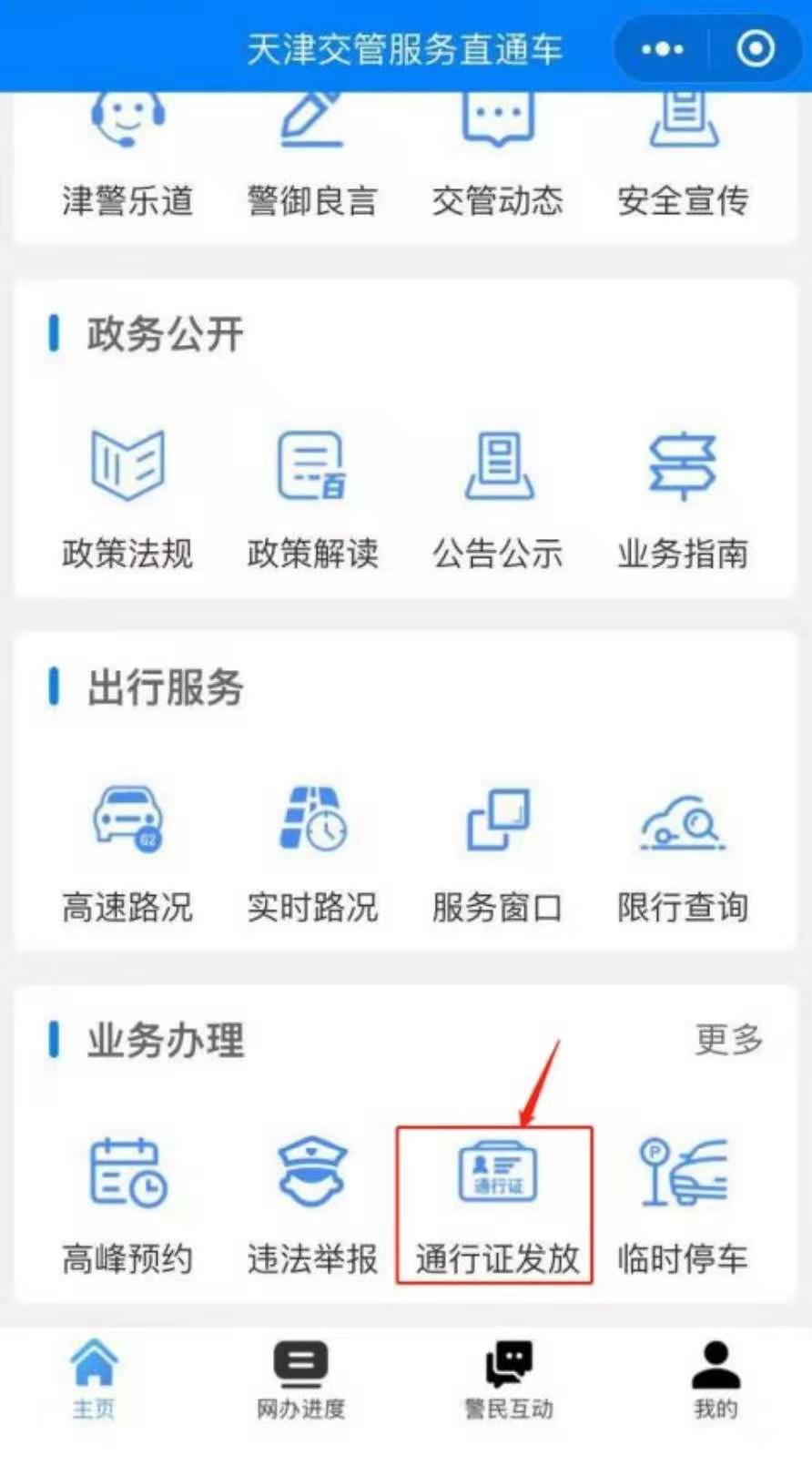 申请入口:天津交管服务直通车小程序