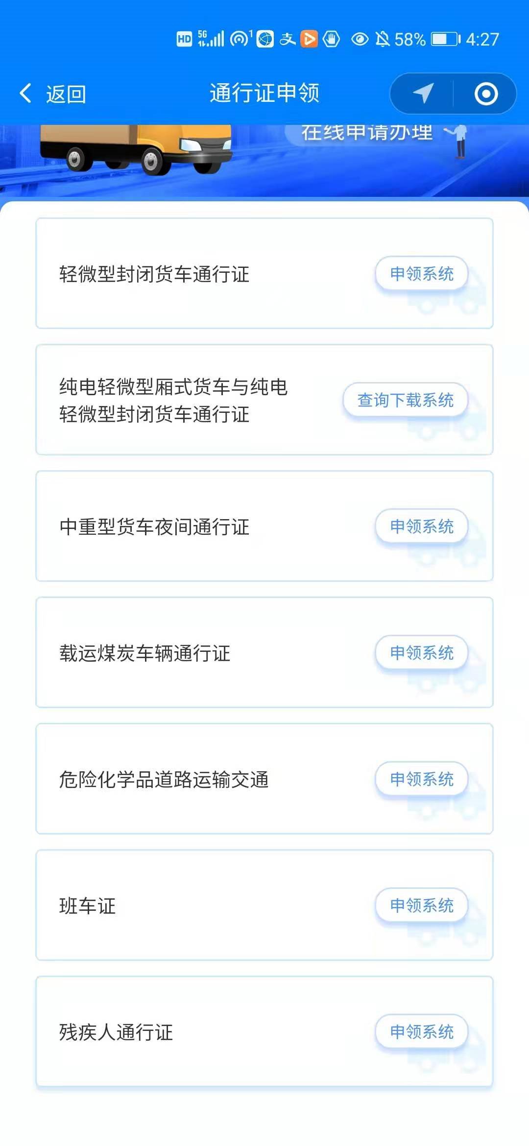 在记录查看页面中可以查看到申请(年检)的通行证数据,包括待审核、审核通过(审核通过的通行证可点击下载)、审核不通过(审核不通过的可重新提交)、还有换车操作后之前申请的通行证被作废的数据。