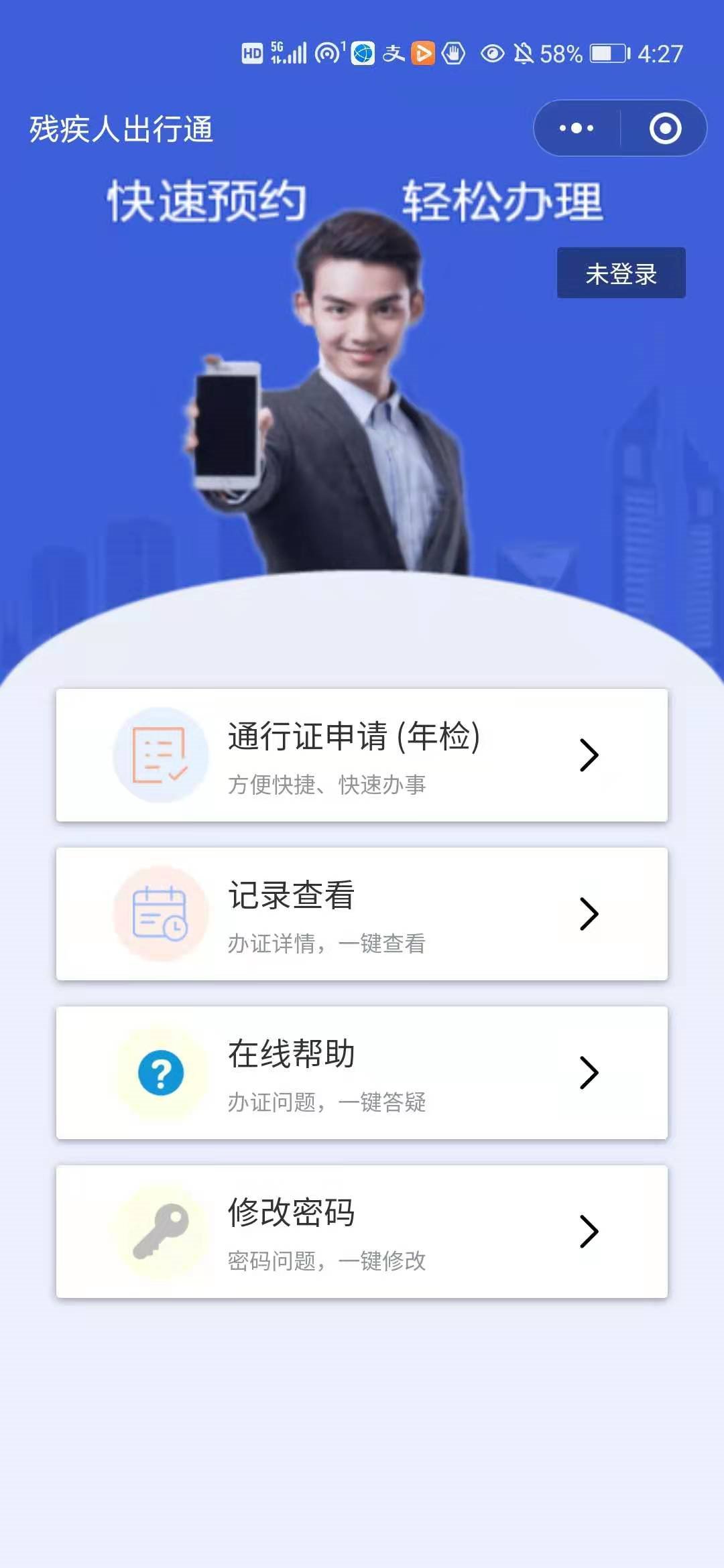 点击“残疾人通行证”进入到《残疾人出行通》小程序