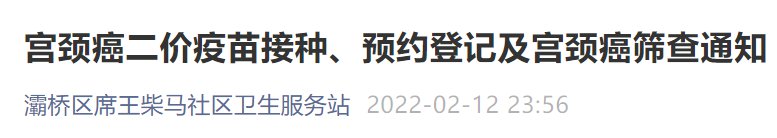 2022西安灞桥区席王柴马社区二价(hpv)疫苗接种通知