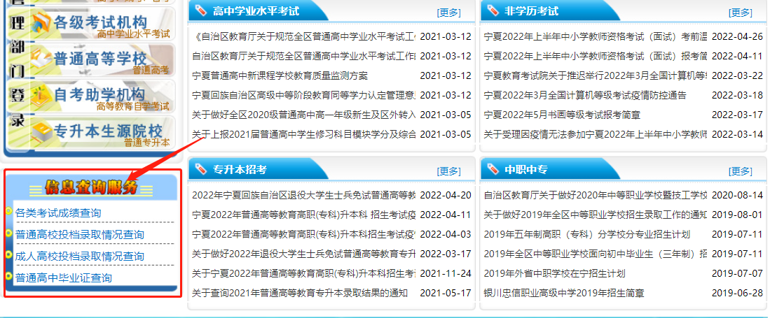 1)2022年高职分类招生文化基础测试成绩已经公布,考生可在宁夏教育考试院官方网站(www.nxjyks.cn)首页左下角“信息查询服务”模块