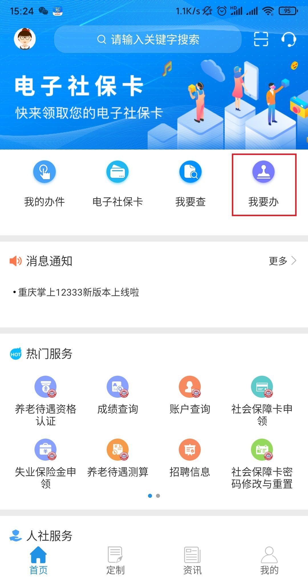 1、登陆:下载“重庆掌上12333”APP,进行注册并登陆。