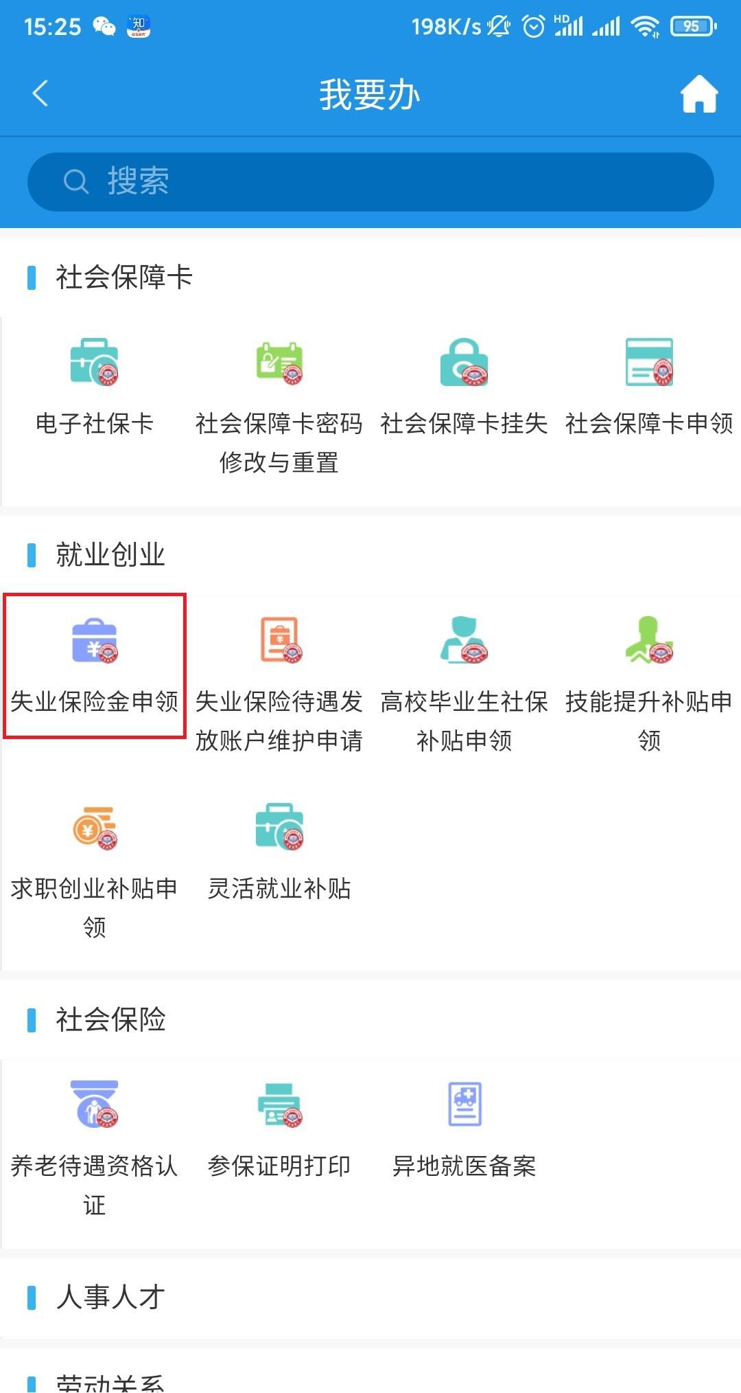 2、提交申请:在首页点击“我要办”—“失业保险金申领”,进入页面后,按提示填写相关信息和上传相关材料,最后点击提交。