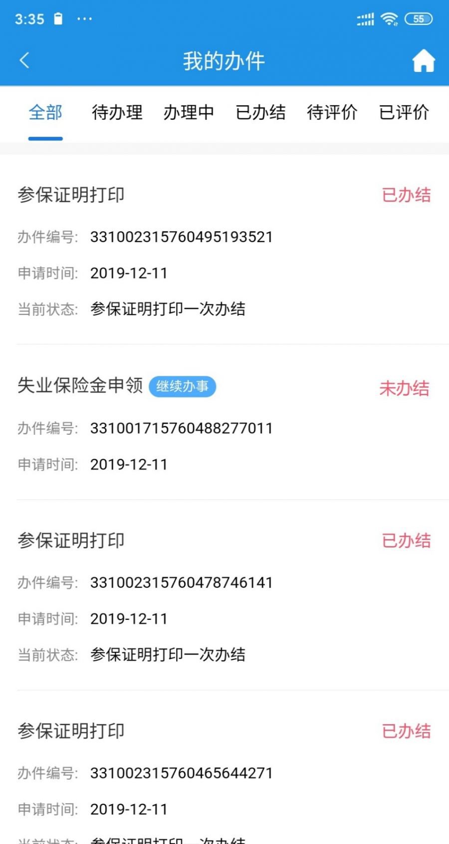3、进度查询:失业保险金申请提交成功后可在“我的”—“我的办件”中查看失业保险金申请办理信息,点击失业保险金申领记录可以查看当前记录的申领进度。