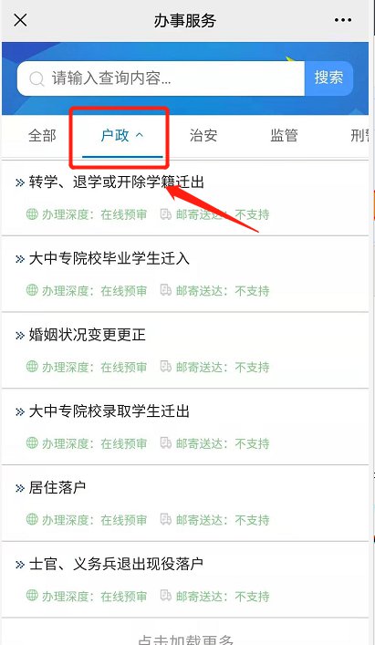 进入“我要办事”模块后,选择“户政”板块,找到或搜索“居住落户”,点击进入后按照提示要求提交申报材料。公安机关在规定时限内完成审核并电话告知结果。审核通过后,申请人携带上传的材料原件到派出所当场办结。