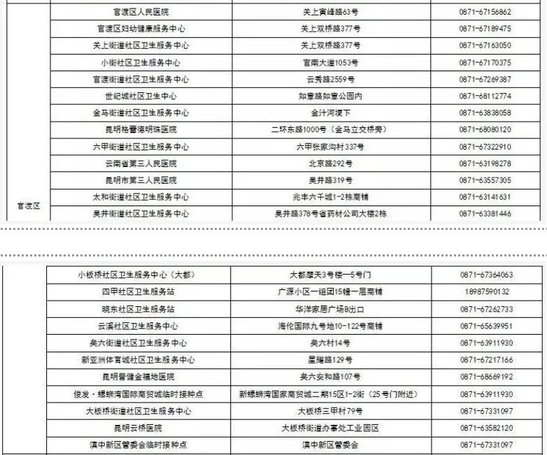 昆明官渡区新冠疫苗接种咨询电话(附地址)