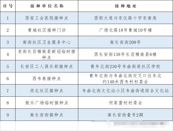 接种地址:长安区张康村村委会(长安区翰林南路,西北大学西侧约200米)