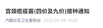 2022西安汽配社区宫颈癌疫苗补种通知