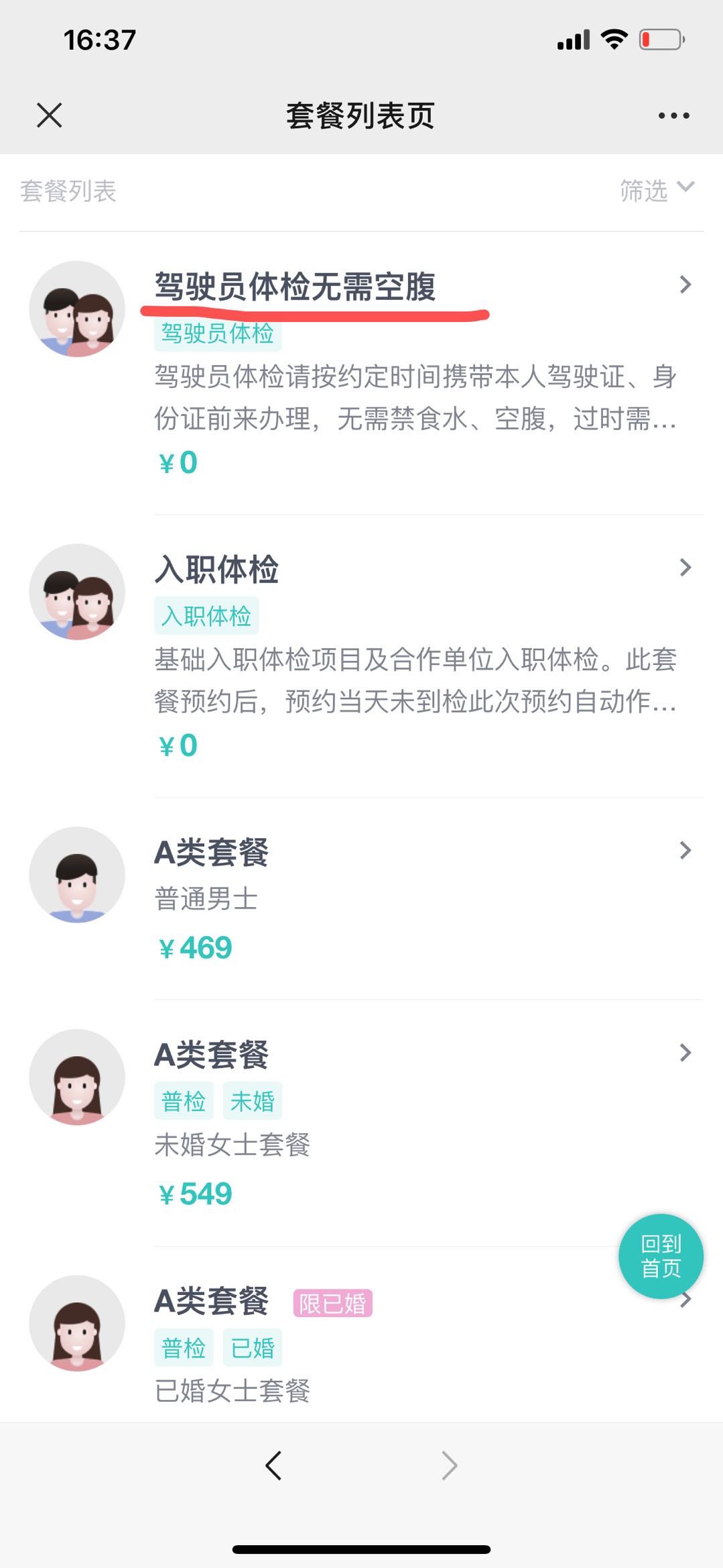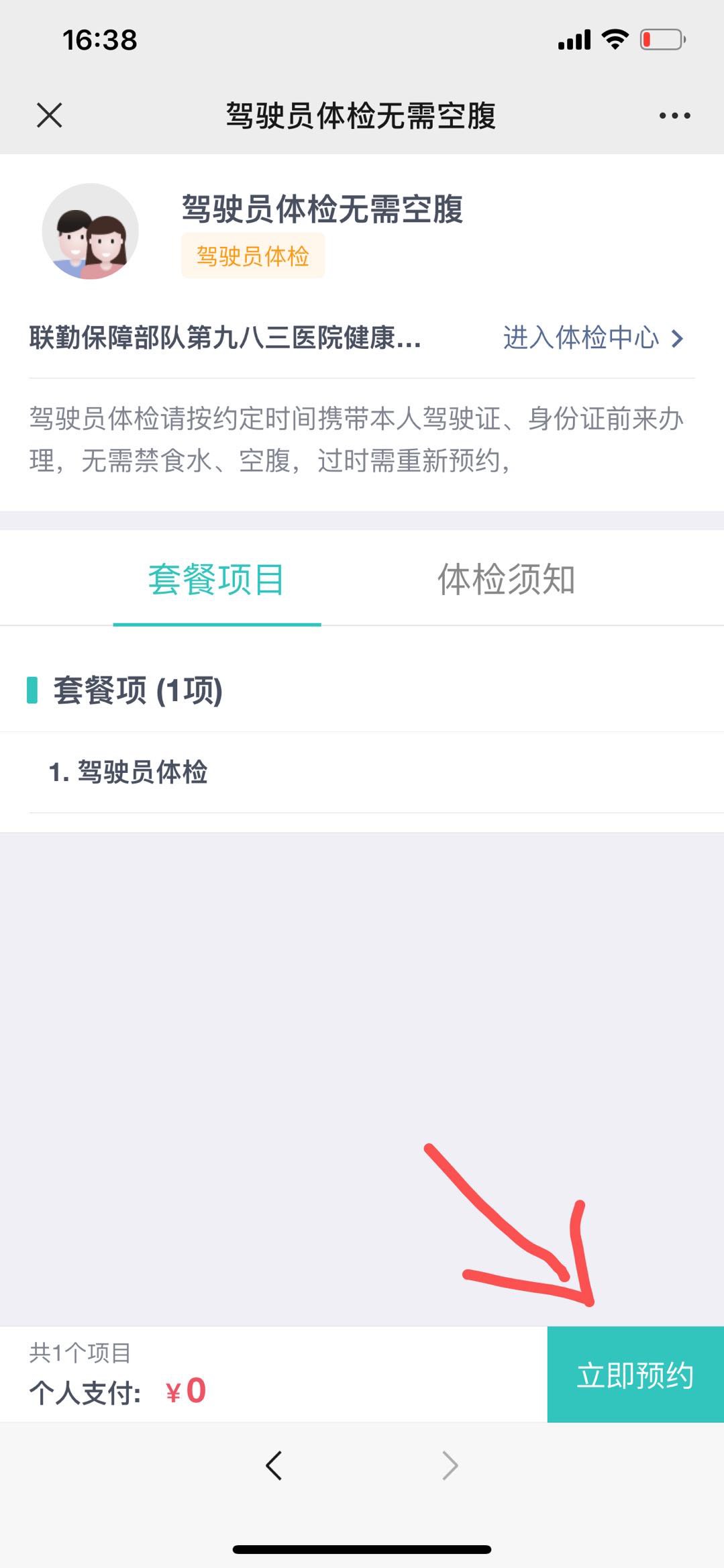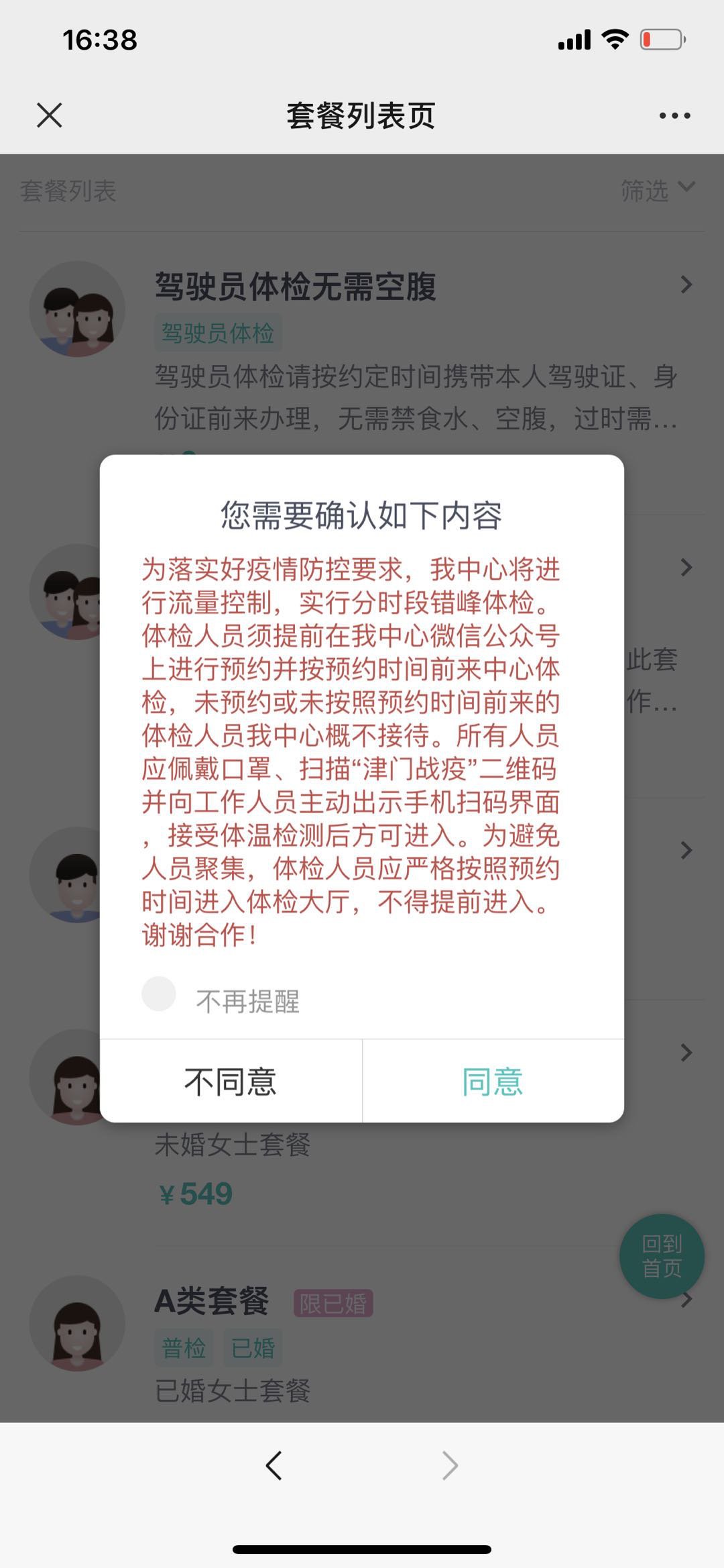 第五步,选择所需的体检项目,阅读完须知点击“同意”