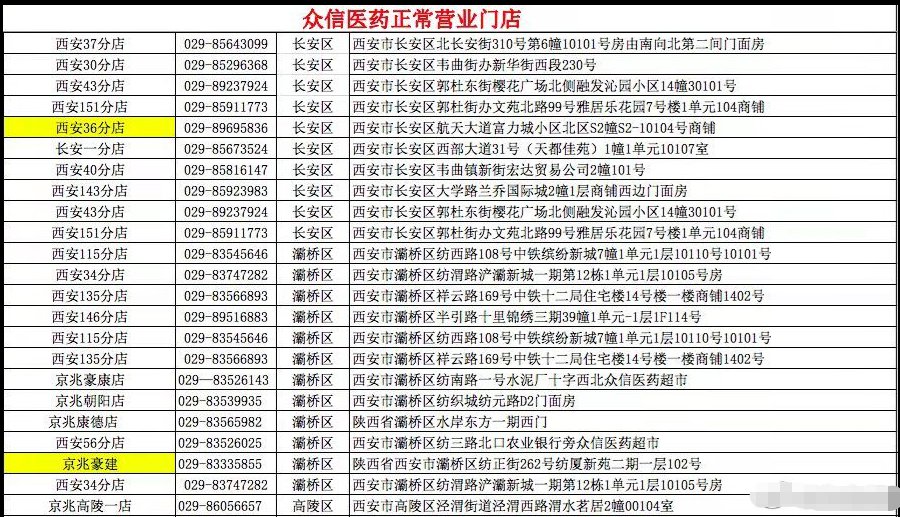 众信医药正常营业门店
