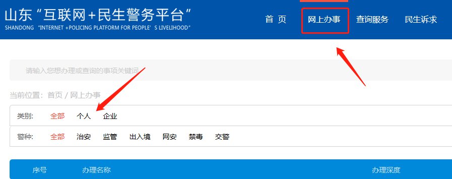 登陆山东“互联网+民生警务平台”,选择个人办事