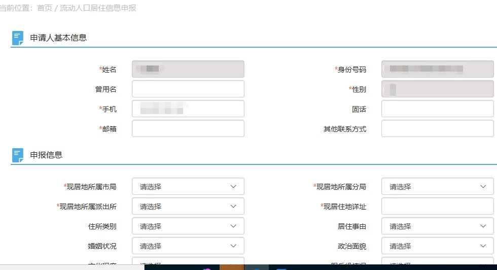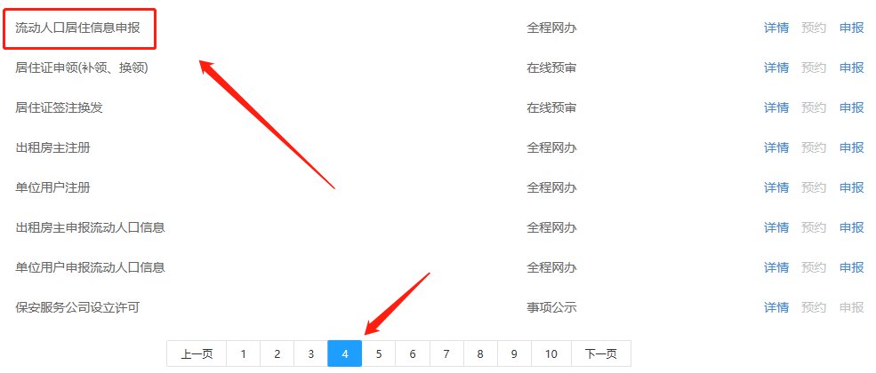 在地4页找到“流动人口居住信息申报”进入页面填写个人信息