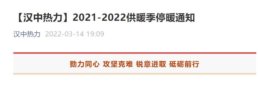 陕西汉中2021-2022供暖季将于3月15日24时结束,本供暖季结束后,将着手对供热系统及设备进行全面检查、保养及维护,为下个采暖季供热运行做好充分准备。