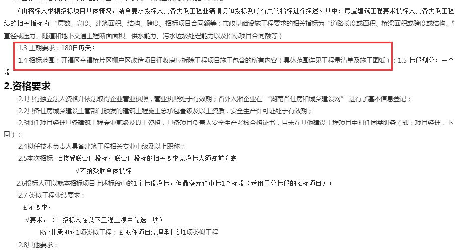 长沙公共资源交易网发布了开福区幸福桥片区棚户区改造项目征收房屋拆除工程项目招标公告,项目位于开福区幸福桥片区,拆除私房、公房共计544户,总面积78447.82平方米,总投资约510万元。