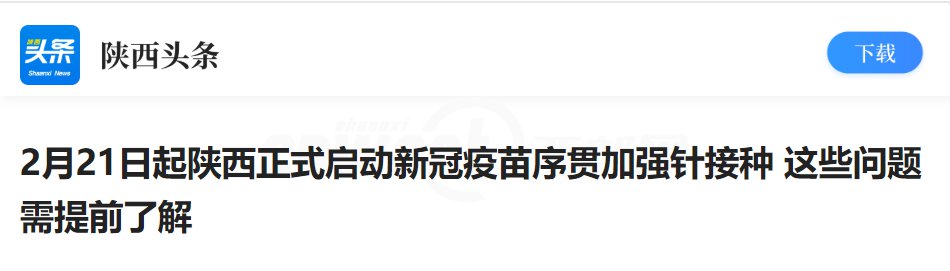 2月21日起,陕西正式启动新冠病毒疫苗序贯加强免疫接种,确保目标接种对象“应接尽接”,建立全省群体免疫屏障。