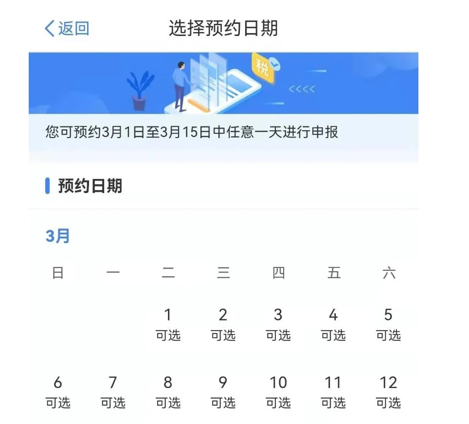 3月1日以后直到3月15日,纳税人仍然可以通过手机个人所得税APP预约办税,选择未约满的任意日期预约即可。