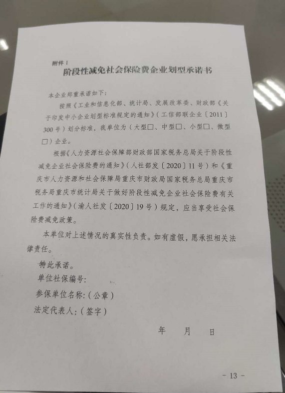 1 | 阶段性减免社会保险费企业划型承诺书