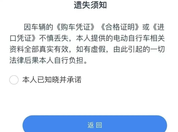 1、登记备案预约系统里面有《遗失须知》选项 ,若您无法提供合格证或发票,不需要您补开发票或手写承诺书上传,直接选择网上承诺即可。