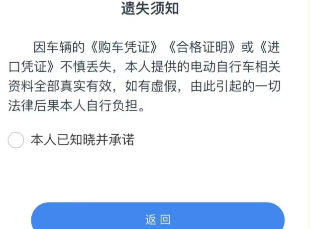 1、登记备案预约系统里面有《遗失须知》选项 ,若您无法提供合格证或发票,不需要您补开发票或手写承诺书上传,直接选择网上承诺即可。