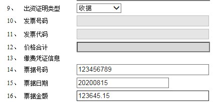 若选择收据填写:“收据号码”、“票据日期”、“票据金额”。