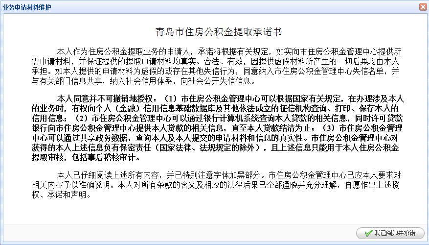 打开后弹出提取承诺书,点【我已阅知并承诺】后继续: