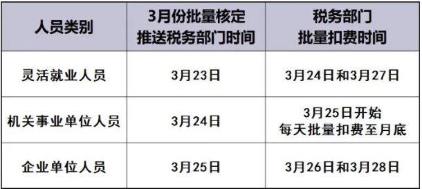 停机前已完成“社保核定”征缴业务的参保单位,在税务部门办理缴费不受影响。3月份社保费的核定和扣费时间如下: