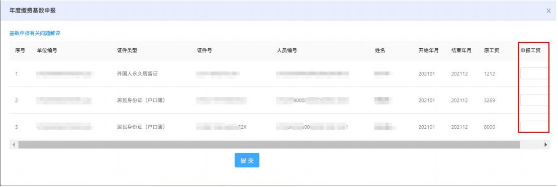 在“年度缴费基数申报”页面,填写“申报工资”提交。