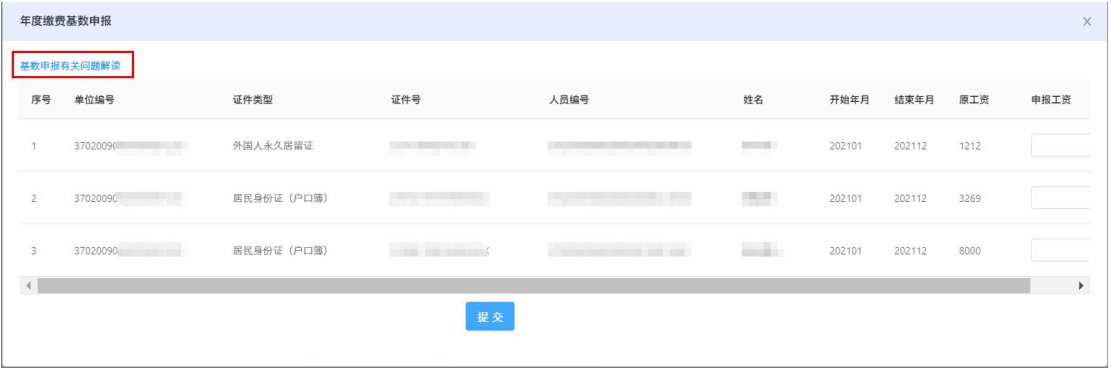 进入年度缴费基数申报页面,可以点击基数申报的有关问题解读,查看《2022年度医疗保险缴费基数申报有关问题解读》。