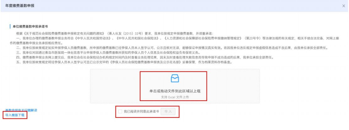 再下载导入模板,维护完申报工资后,将“单位年度工资报盘文件”单击或拖动至文件上传区域;