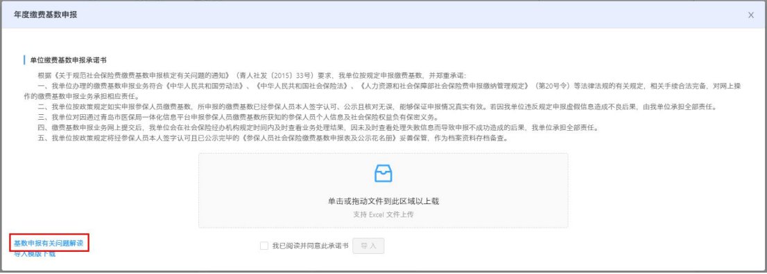 (1)选择“年度基数报盘导入”方式,先点击基数申报的有关问题解读,查看《2022年度医疗保险缴费基数申报有关问题解读》;